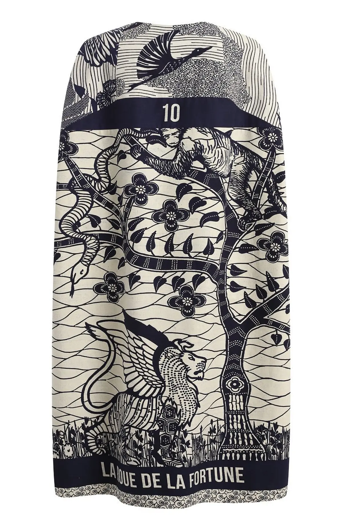 Хлопковое пальто Dior выделяется ярким графичным принтом в черно-белой гамме с изображением флоры и фауны, напоминающим иллюстрации к сказочным историям. Свободный крой с прямыми линиями и слегка расклешёнными рукавами создаёт лёгкий силуэт, а натуральный хлопок обеспечивает комфорт и удобство в носке. Это пальто сочетает в себе артистичность и утончённость, идеально подходя для создания выразительного повседневного или вечернего образа.