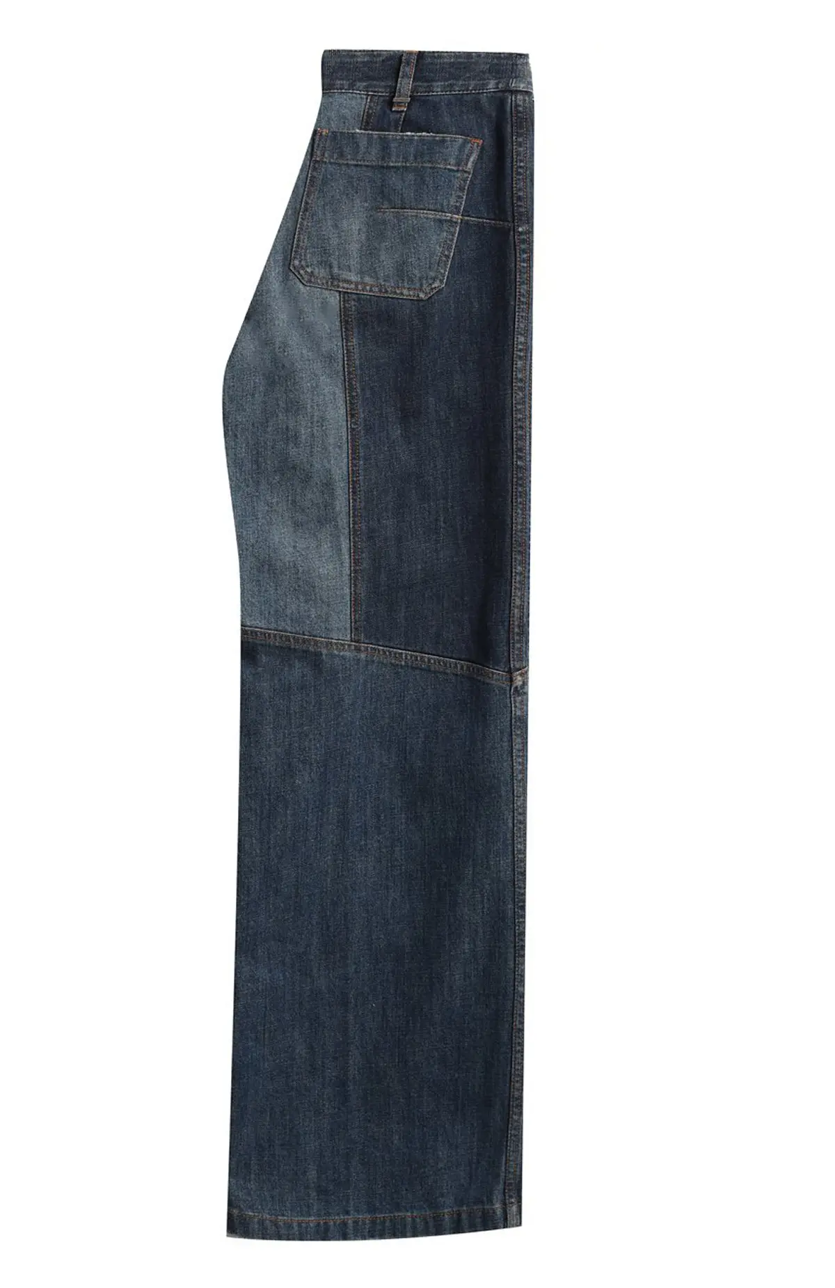 Джинсы Dior из плотного денима с эффектом пэчворк подчеркивают современный характер классической модели. Прямой укороченный крой и крупные накладные карманы делают вещь универсальной базой для повседневных образов в городском стиле.