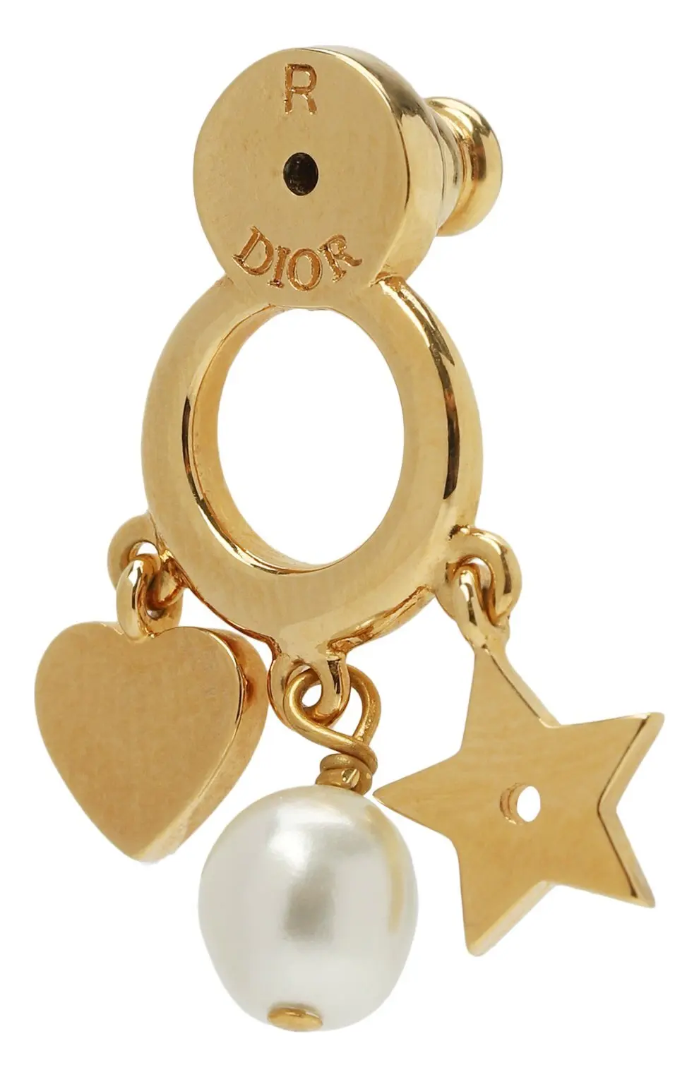 Яркие серьги Dior Tribales привлекают внимание игривыми подвесками в виде звезды, сердца и жемчужины, что отсылает к символике и романтике бренда. Верхняя часть украшена знаковым логотипом CD, усыпанным сияющими кристаллами, которые создают утончённое мерцание при движении. Гармония золотистого металла, жемчуга и символических подвесок делает эти серьги выразительным акцентом, способным подчеркнуть индивидуальность и добавить шарм любому наряду.