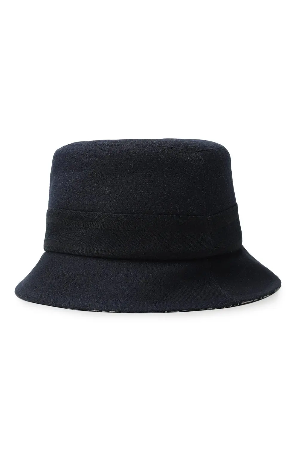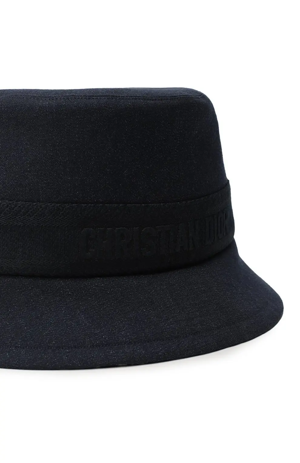 Панама выполнена из плотного тёмного материала с мягкой матовой фактурой, создающей лаконичный и аккуратный силуэт. Широкая тесьма по окружности дополнена тонким рельефным декором в тон, что подчёркивает сдержанный характер модели. Изделие сидит комфортно и легко вписывается как в повседневные образы, так и в более выразительные комбинации.