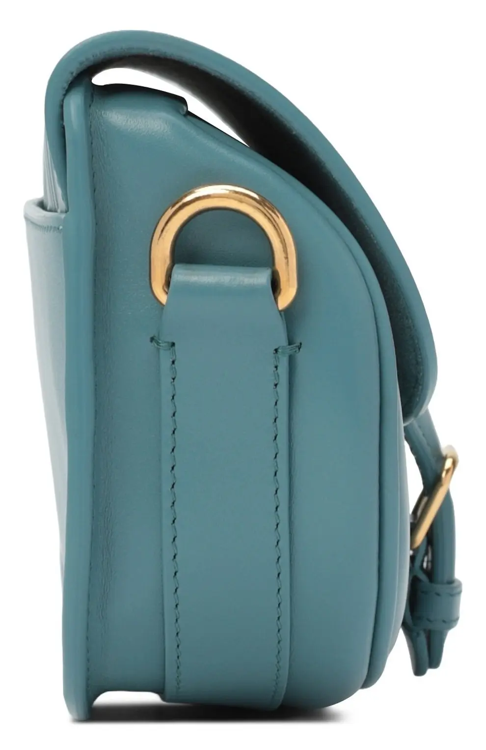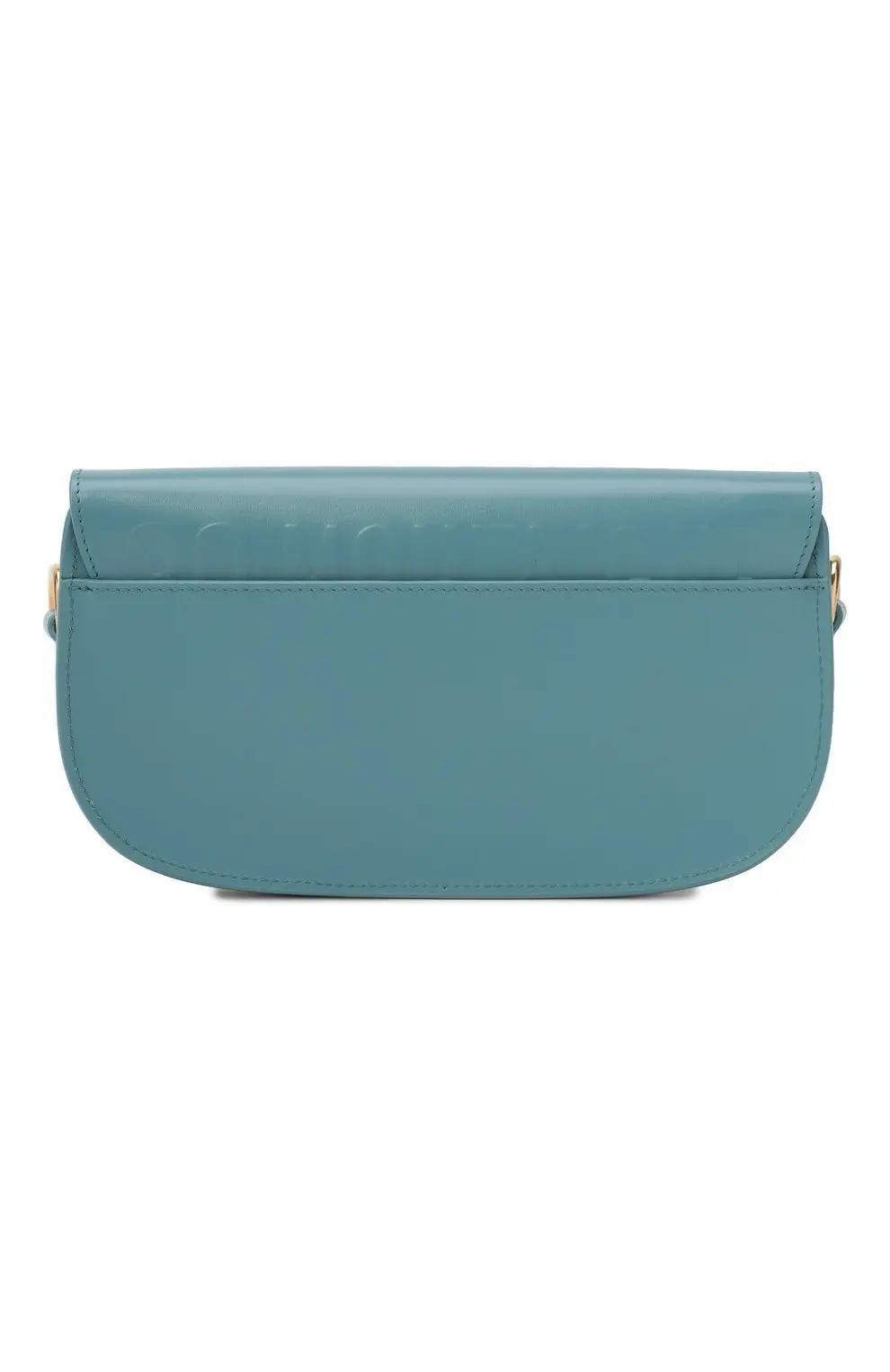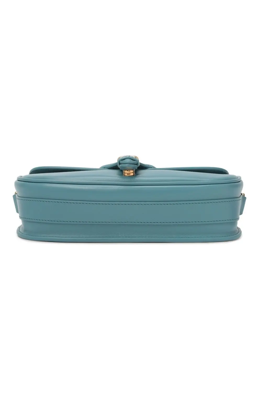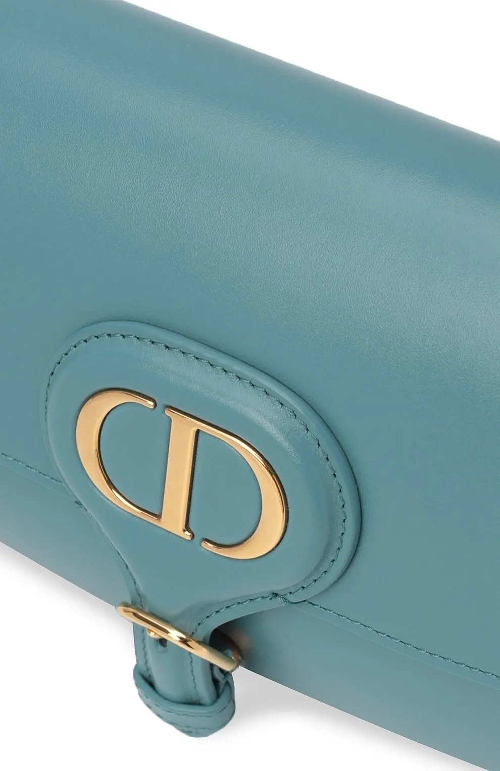 Bobby East-West от Dior — современная интерпретация культовой сумки в вытянутом силуэте. Аксессуар из гладкой кожи в оттенке бирюза украшен культовой пряжкой CD с золотистым покрытием. Линии мягко повторяют форму тела, а съемный плечевой ремень позволяет носить модель как на плече, так и кросс-боди.