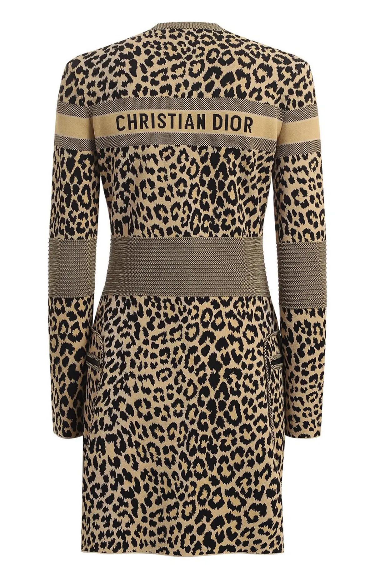 Платье из вискозы от Dior выполнено в эффектном леопардовом принте, который подчеркивает смелый и современный характер бренда. Приталенный силуэт с акцентом на линии талии гармонично сочетается с прямым кроем, создавая изысканный и женственный образ. Центральная молния добавляет изделию динамичности и лёгкой дерзости, а длинные рукава делают модель универсальной для разных сезонов. Яркий принт в сочетании с благородной фактурой вискозы превращает это платье в выразительный элемент гардероба, идеально подходящий как для повседневного выхода, так и для вечернего события.