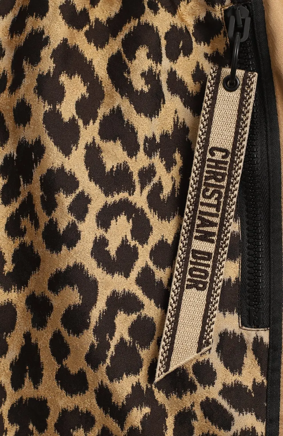 Юбка Dior с леопардовым принтом выполнена в спортивном стиле. Модель имеет эластичный пояс на кулиске и боковые карманы на молнии с декоративными лентами с логотипом Christian Dior. Дизайн сочетает в себе дерзкий анималистический мотив и практичные детали, подчеркивая современный характер бренда.