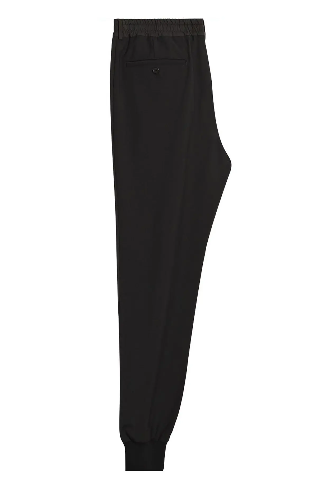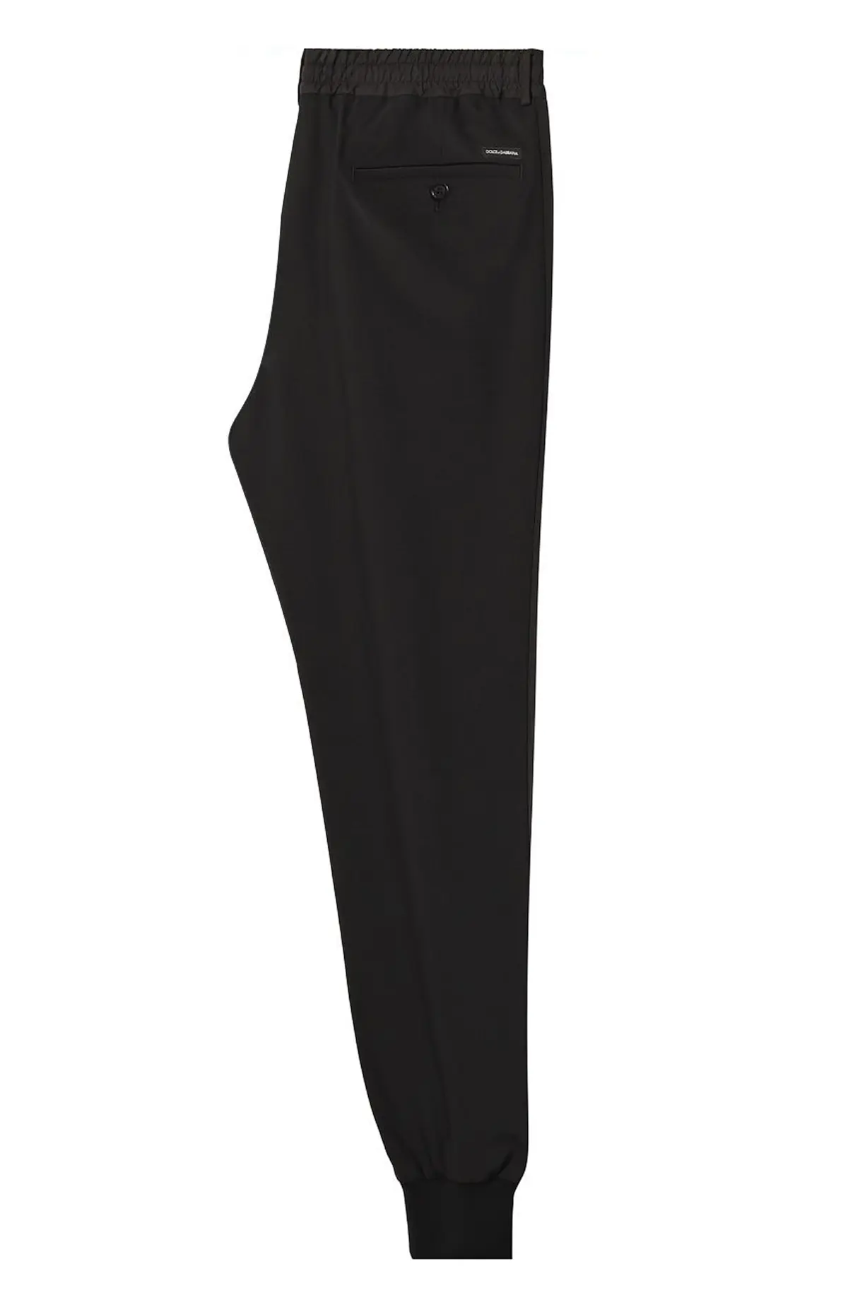 Джоггеры Dolce & Gabbana выполнены из мягкой ткани с добавлением шерсти, что обеспечивает комфорт и безупречную посадку. Эластичный пояс со шнурком и манжеты по низу создают спортивный силуэт, а лаконичный черный цвет делает модель универсальной для повседневных и кэжуал-образов. Идеальное сочетание элегантности и удобства в духе итальянского бренда.