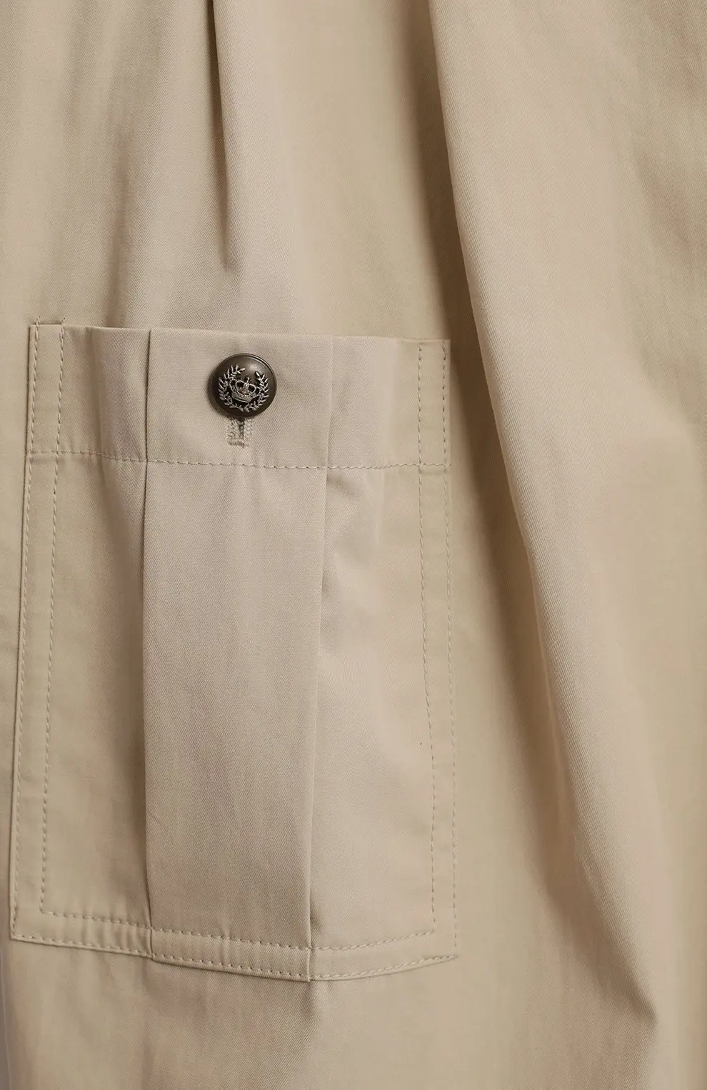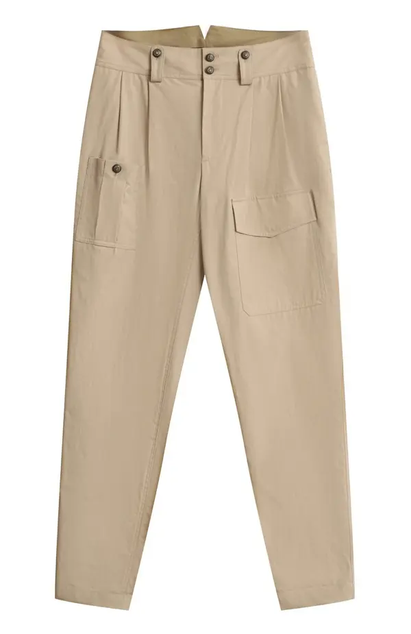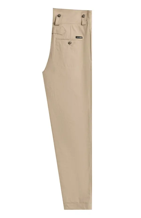 Хлопковые брюки Dolce&Gabbana выполнены в светло-бежевом оттенке и сочетают в себе элегантность и функциональность. Модель имеет завышенную талию, аккуратные защипы и накладные карманы с клапанами, что придаёт образу лёгкий утилитарный характер. Мягкая, дышащая ткань обеспечивает комфорт, а безупречный крой подчеркивает итальянскую эстетику бренда.