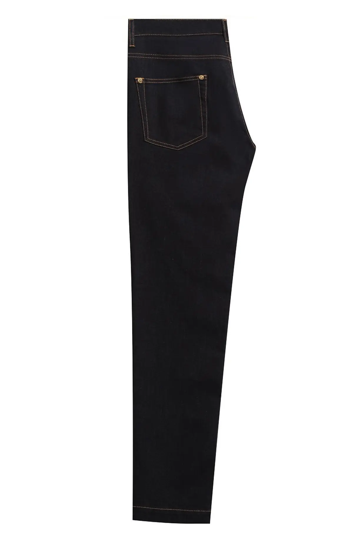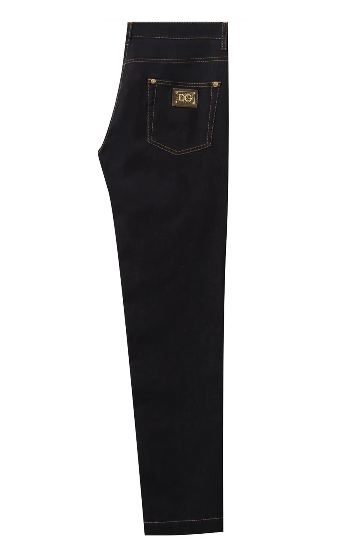Джинсы Dolce & Gabbana из плотного денима глубокого синего цвета. Классический прямой крой с пятью карманами, контрастной прострочкой и фирменной фурнитурой бренда. Универсальная модель, подходящая как для повседневных, так и для более стильных образов.