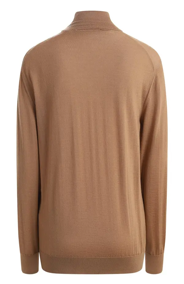 Водолазка выполнена из мягкого кашемира благородного карамельного оттенка. Тонкий трикотаж обеспечивает комфортное прилегание и приятно согревает. Лаконичный крой с аккуратным воротником-гольфом делает модель универсальной базой для многослойных образов.