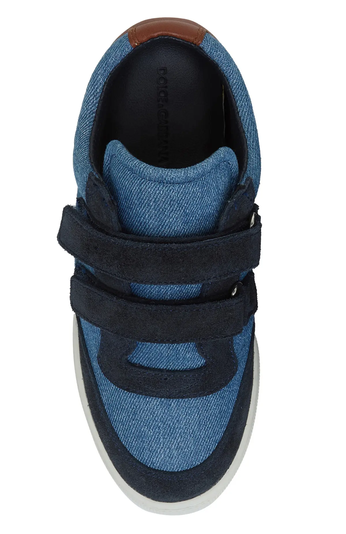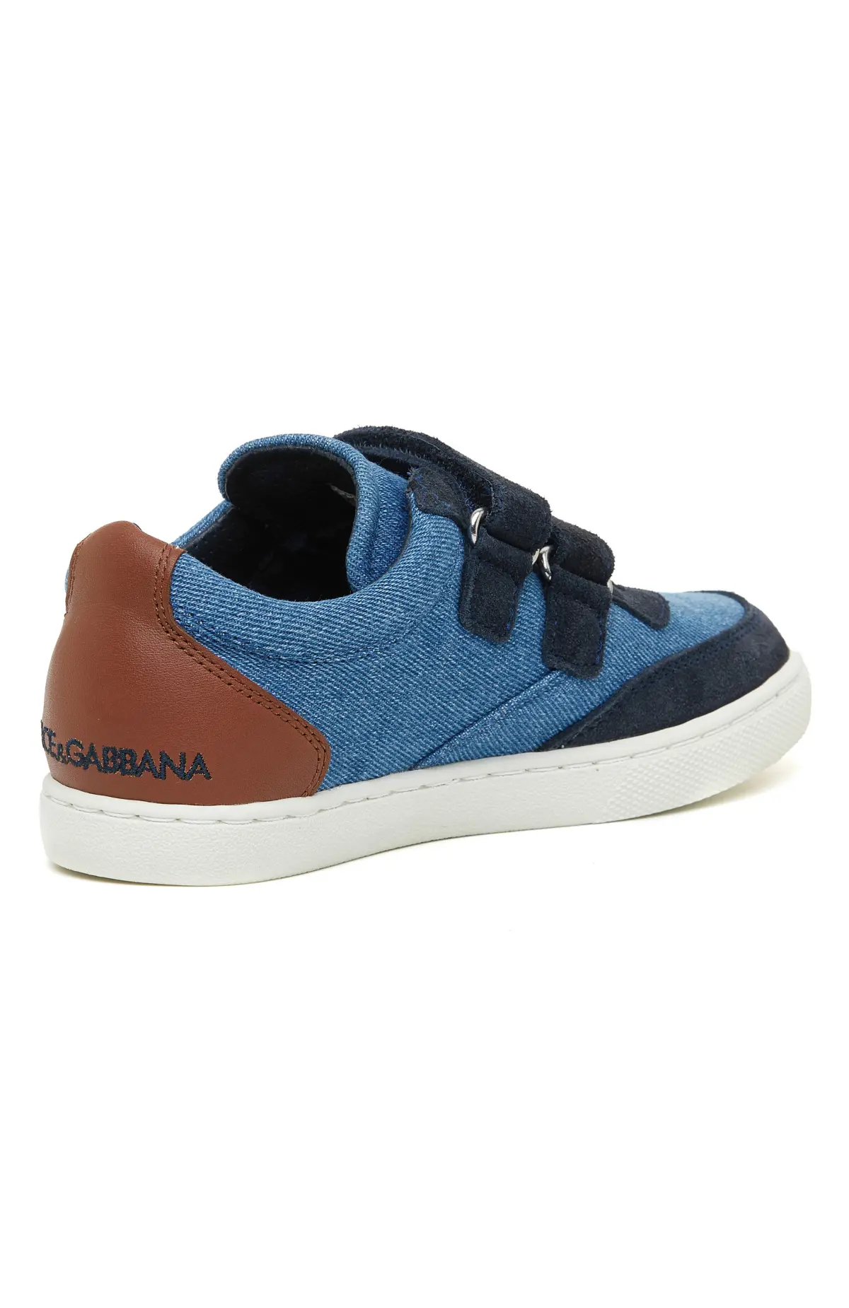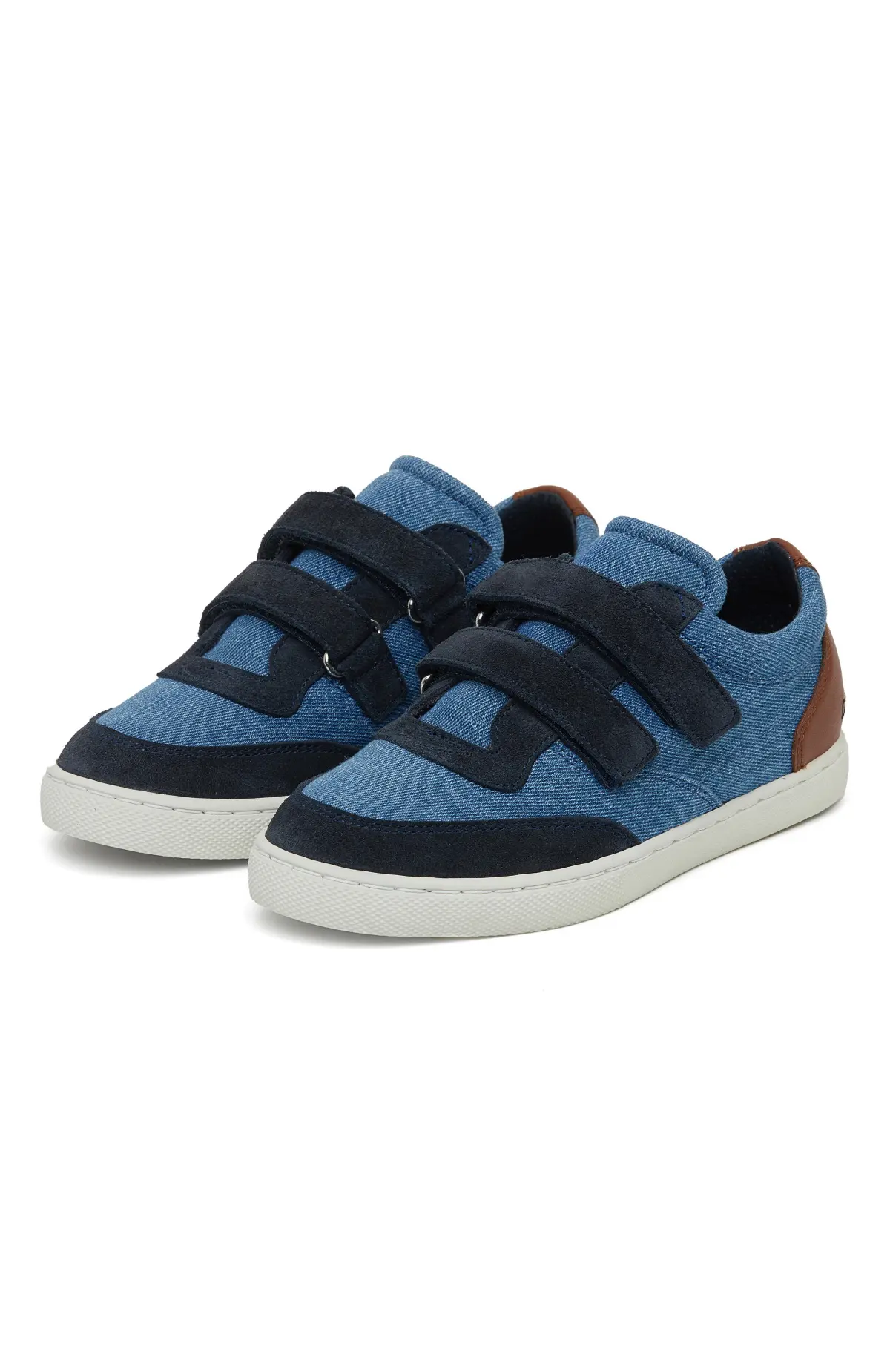 Кеды выполнены из фактурного денима с замшевыми накладками глубоко-синего оттенка и контрастной кожаной пяткой. Два ремешка на велкро обеспечивают быстрые фиксацию и комфортное прилегание. Лаконичная cupsole-подошва смягчает шаг и подчёркивает чистые линии модели.