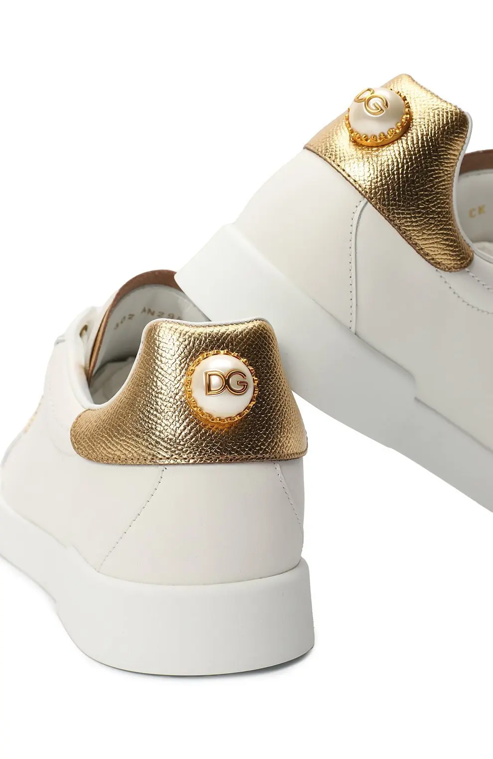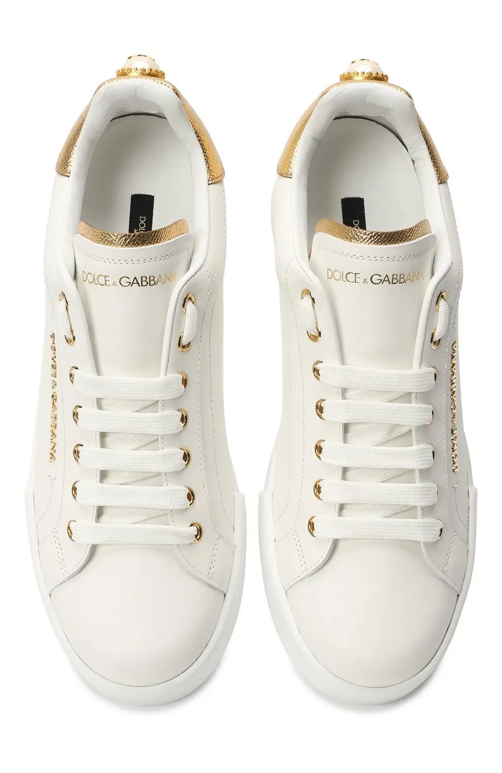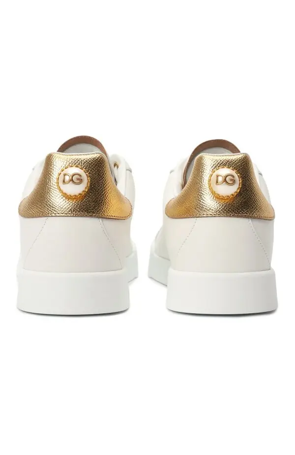 Кеды Portofino Dolce&Gabbana — это сочетание минимализма и роскоши в спортивном стиле. Изготовленные из гладкой кожи, они украшены золотистыми акцентами на заднике, люверсах и фирменным логотипом сбоку, что придаёт модели изысканный характер. Чистые линии, массивная подошва и продуманная эргономика делают их универсальными для ежедневных образов, добавляя в них нотку итальянской элегантности.