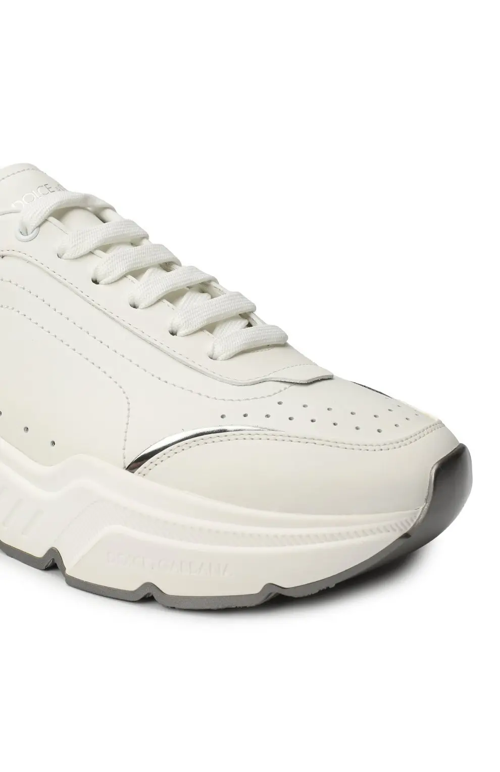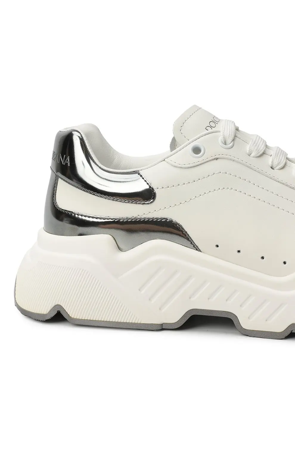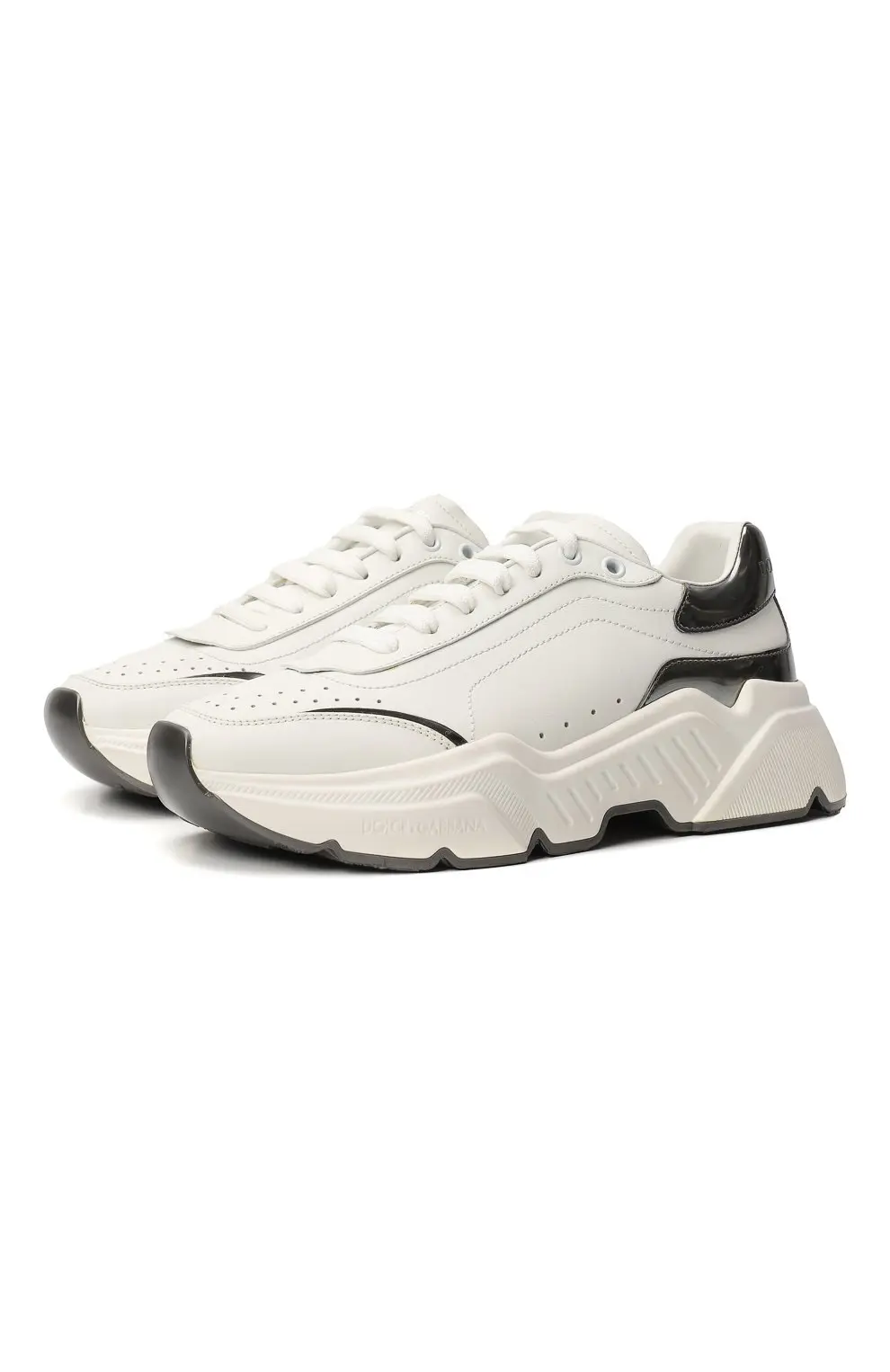 Кроссовки Daymaster от Dolce&Gabbana выполнены из кожи с контрастными вставками и объемной рельефной подошвой. Перфорация и логотип бренда подчеркивают спортивный и современный стиль модели.