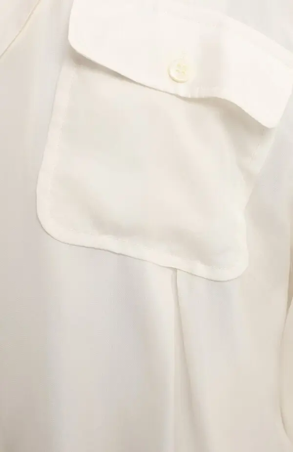 Шелковая рубашка Loro Piana выполнена в лаконичном стиле. Мягкая ткань придаёт образу лёгкость и изысканность. Прямой крой обеспечивает комфорт и свободу движений. Накладные карманы и классический воротник добавляют практичности и сдержанной элегантности.