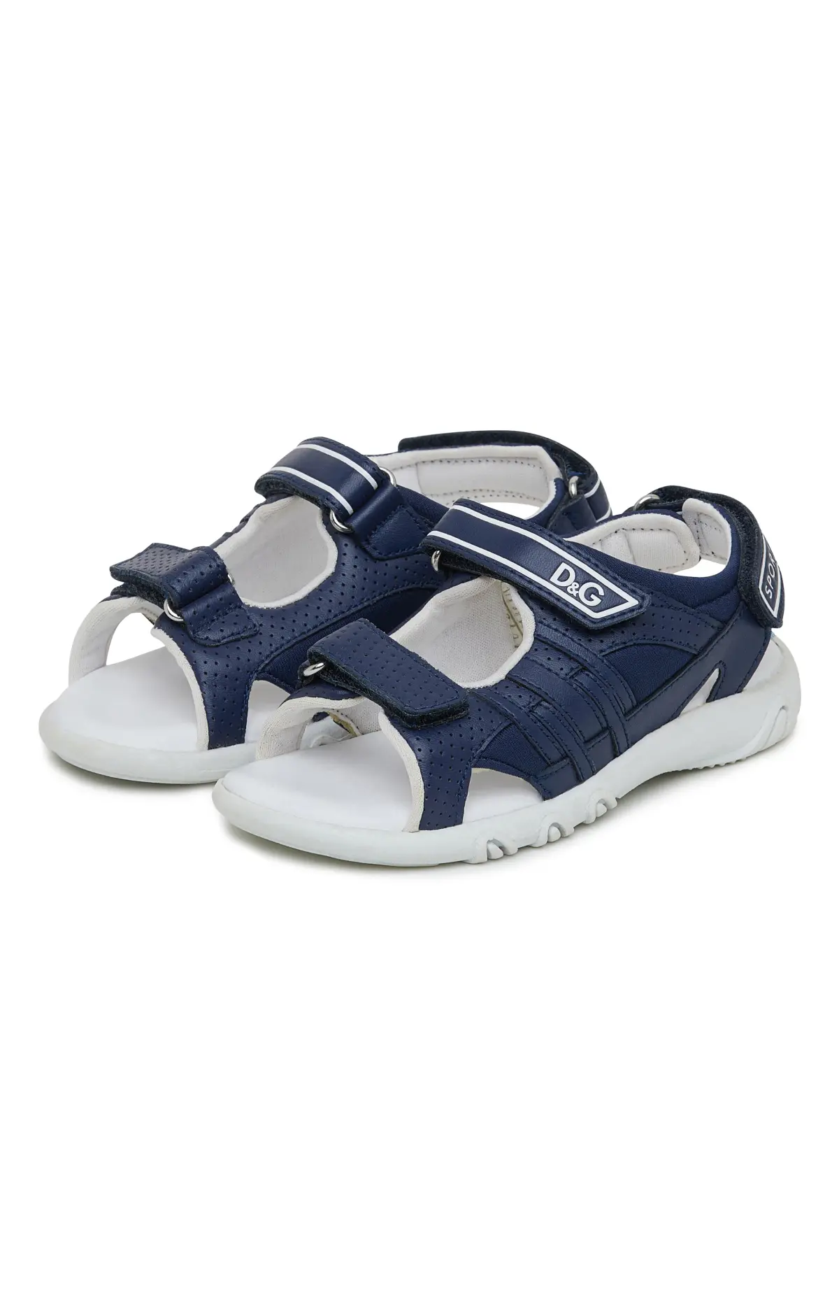Сандалии выполнены из мягкого материала в тёмно-синем оттенке с перфорацией для вентиляции. Регулируемые ремешки на велкро обеспечивают надёжную фиксацию и комфортное прилегание. Лёгкая амортизирующая подошва с протектором смягчает шаг и подходит для активной повседневной носки.