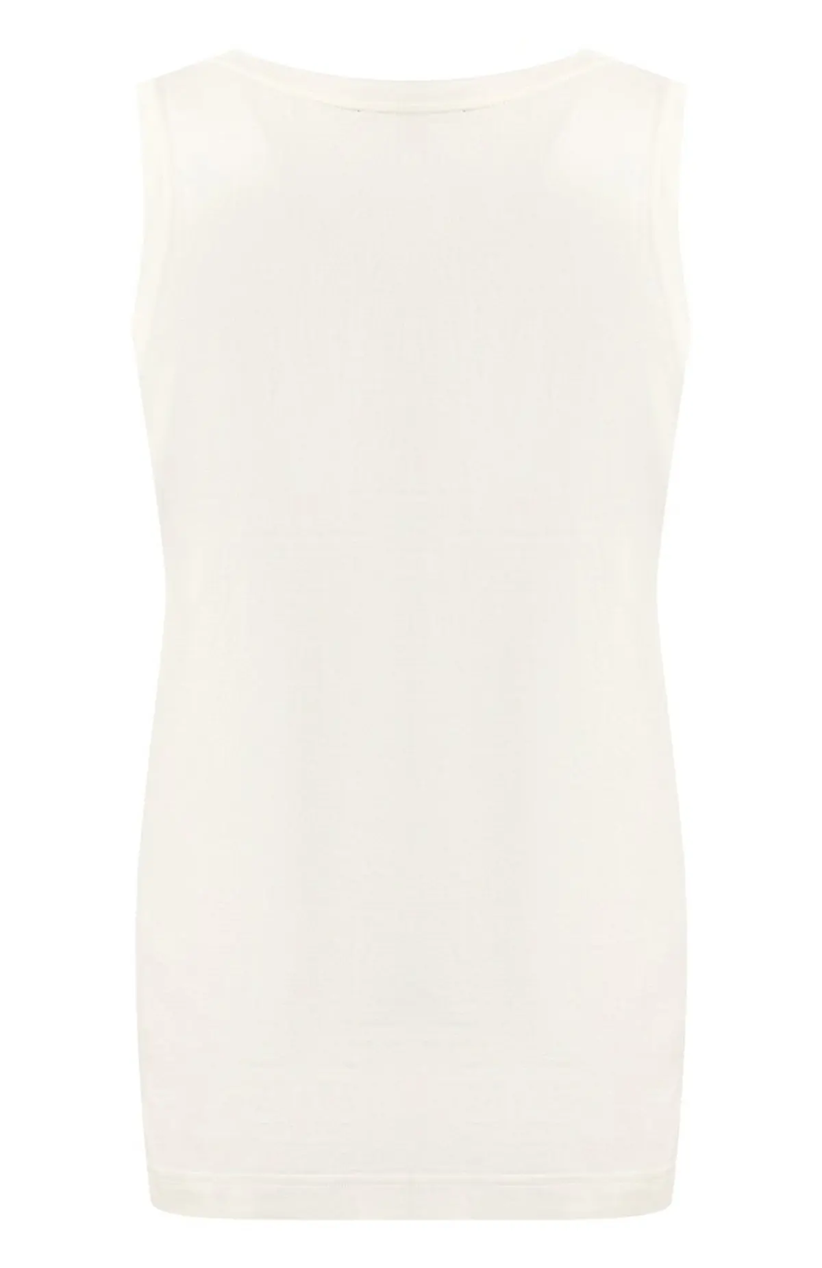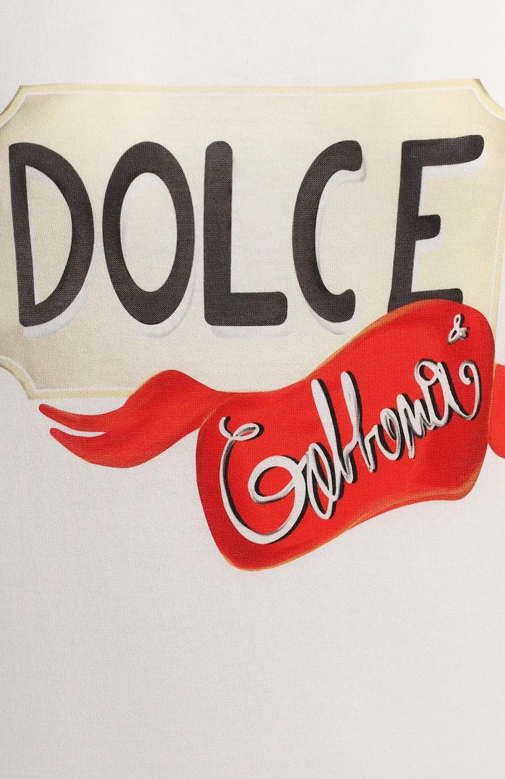 Хлопковый топ от Dolce&Gabbana выполнен в белом цвете и украшен крупным принтом с логотипом бренда и красной лентой с надписью, которая привлекает внимание. Модель без рукавов имеет простой и удобный крой, что делает её комфортной в носке. Топ легко сочетается с джинсами, шортами или юбками, подходя как для повседневных прогулок, так и для более неформальных встреч. Натуральный хлопок обеспечивает мягкость и приятные ощущения на коже.