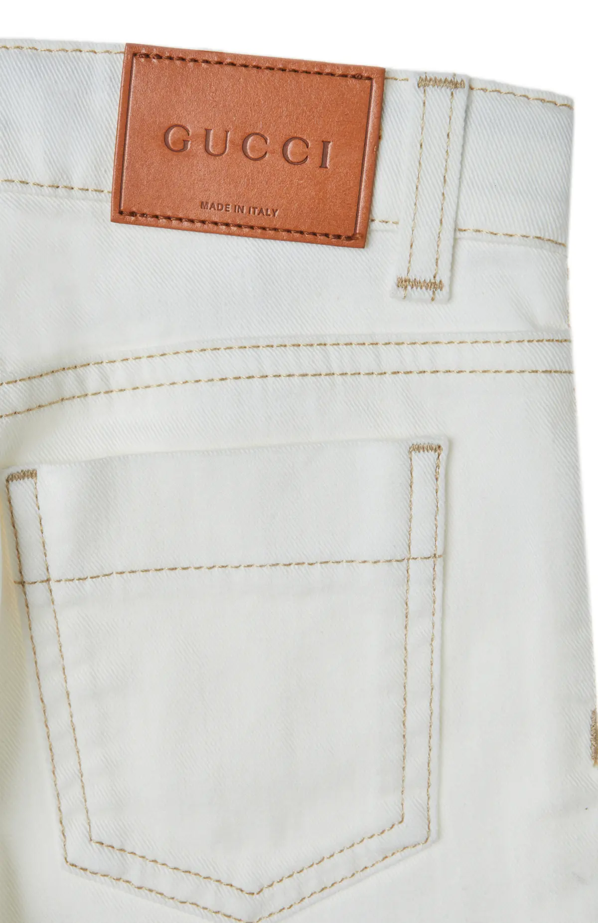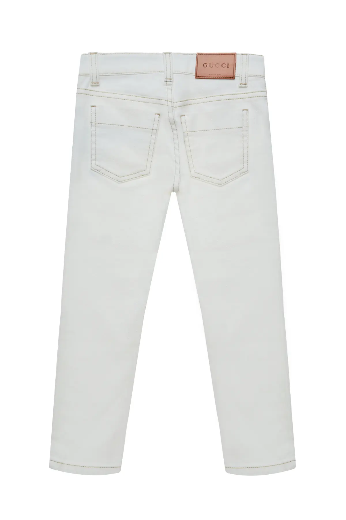 Джинсы выполнены из плотного хлопкового денима с гладкой фактурой и лёгкой эластичностью, обеспечивающей комфорт при движении. Модель имеет классический прямой крой с пятью карманами и аккуратной посадкой. Светлый оттенок подчёркивает свежесть образа и делает изделие универсальным для повседневного гардероба.
