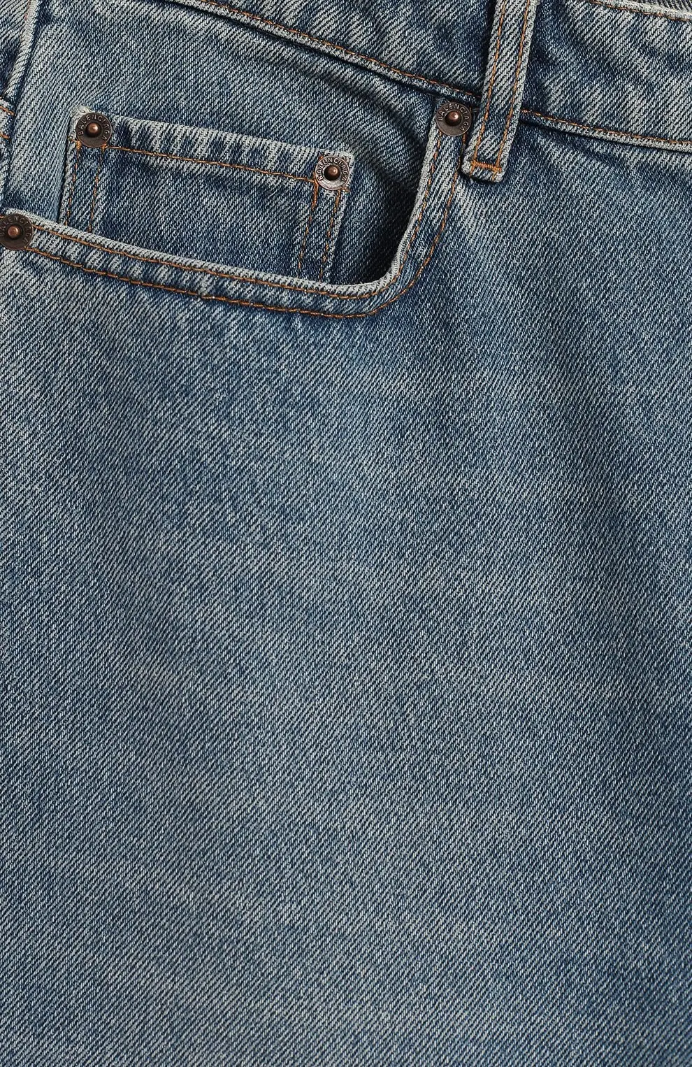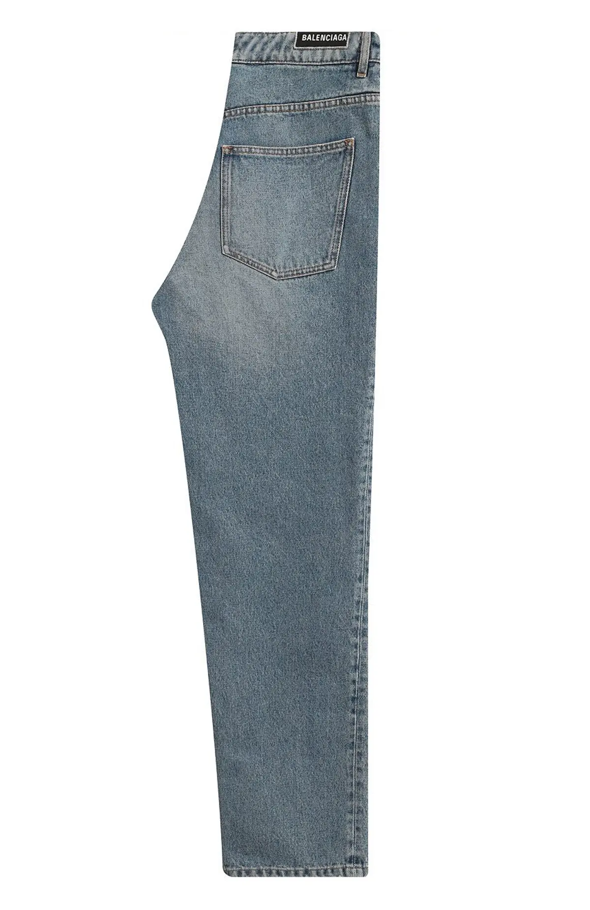Джинсы Balenciaga прямого кроя из плотного хлопкового денима голубого оттенка. Модель с классической посадкой и эффектом легкой винтажной выцветки. Минималистичный дизайн подчеркивает универсальность изделия — его можно сочетать как с худи и кроссовками, так и с жакетом в стиле кэжуал.