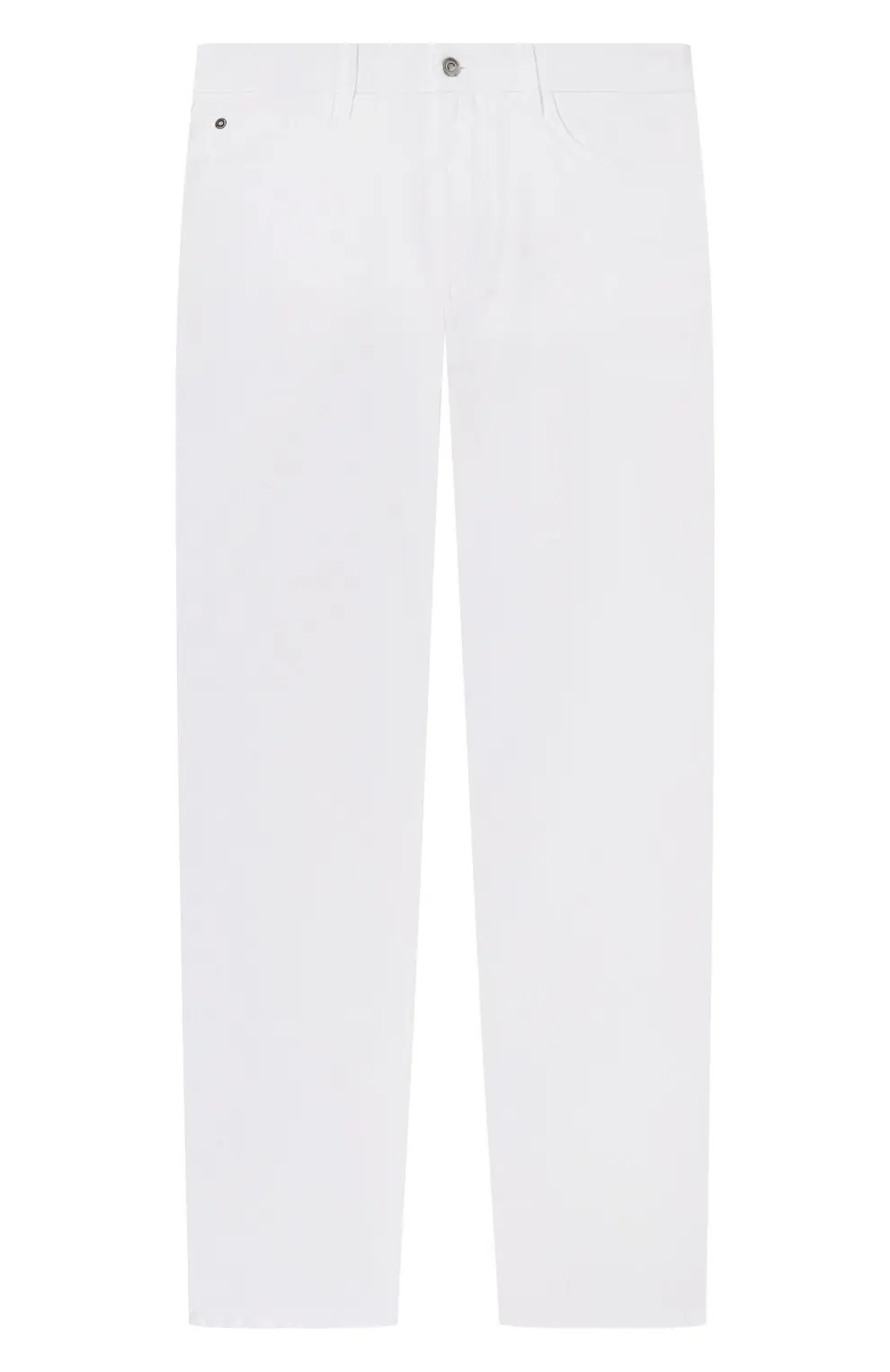 Джинсы Loro Piana в белом цвете выполнены из премиального хлопка с добавлением эластана, что обеспечивает комфорт и свободу движений. Классический крой и минималистичный дизайн подчеркивают элегантность и универсальность модели. Такая пара станет идеальной основой для летних и повседневных образов, сочетаясь как с casual-верхом, так и с более строгими элементами гардероба.