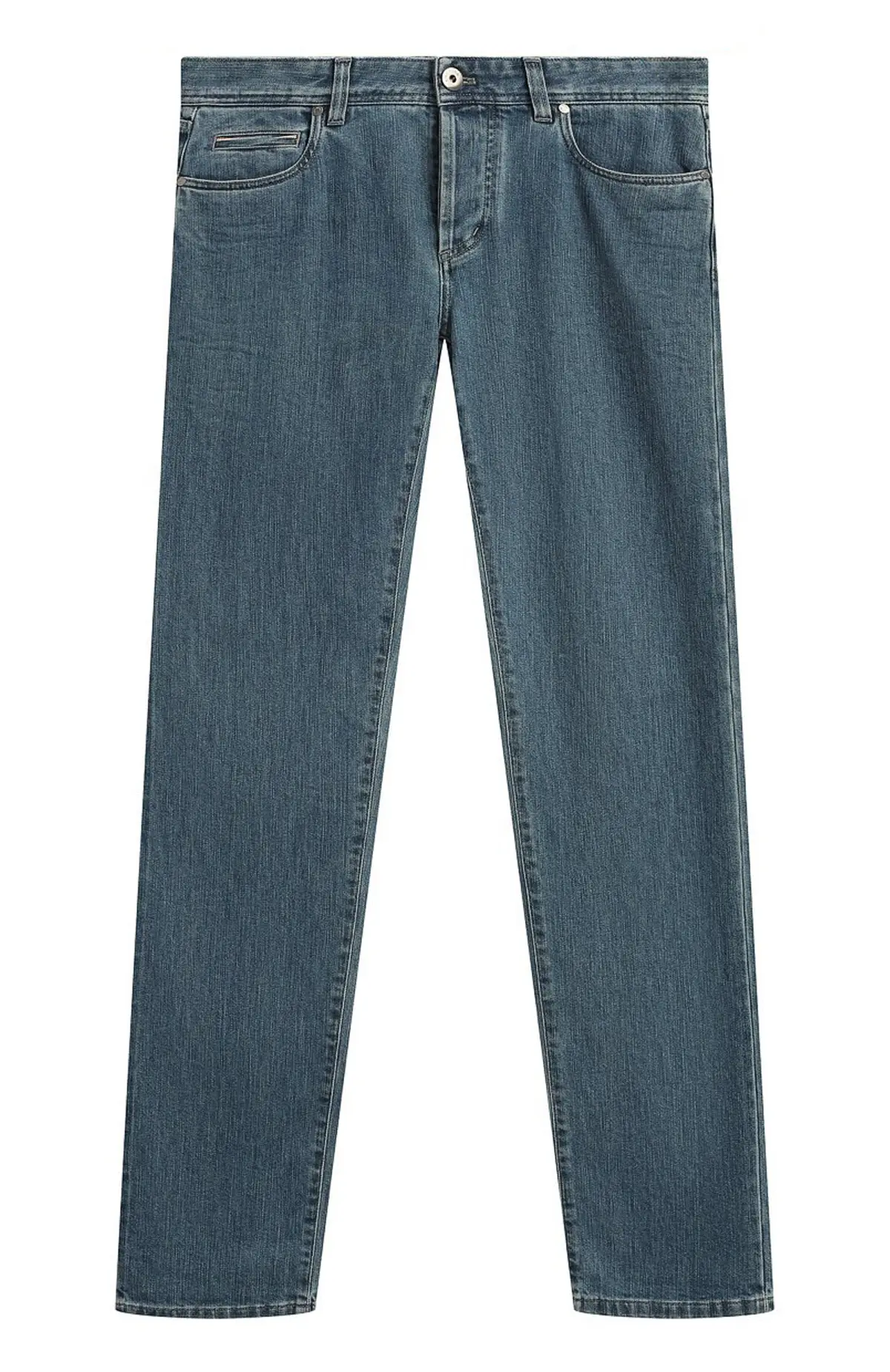Джинсы Loro Piana из мягкого хлопкового денима с добавлением эластана. Классический прямой крой, средняя посадка и лаконичная отделка подчёркивают элегантную повседневность модели.
