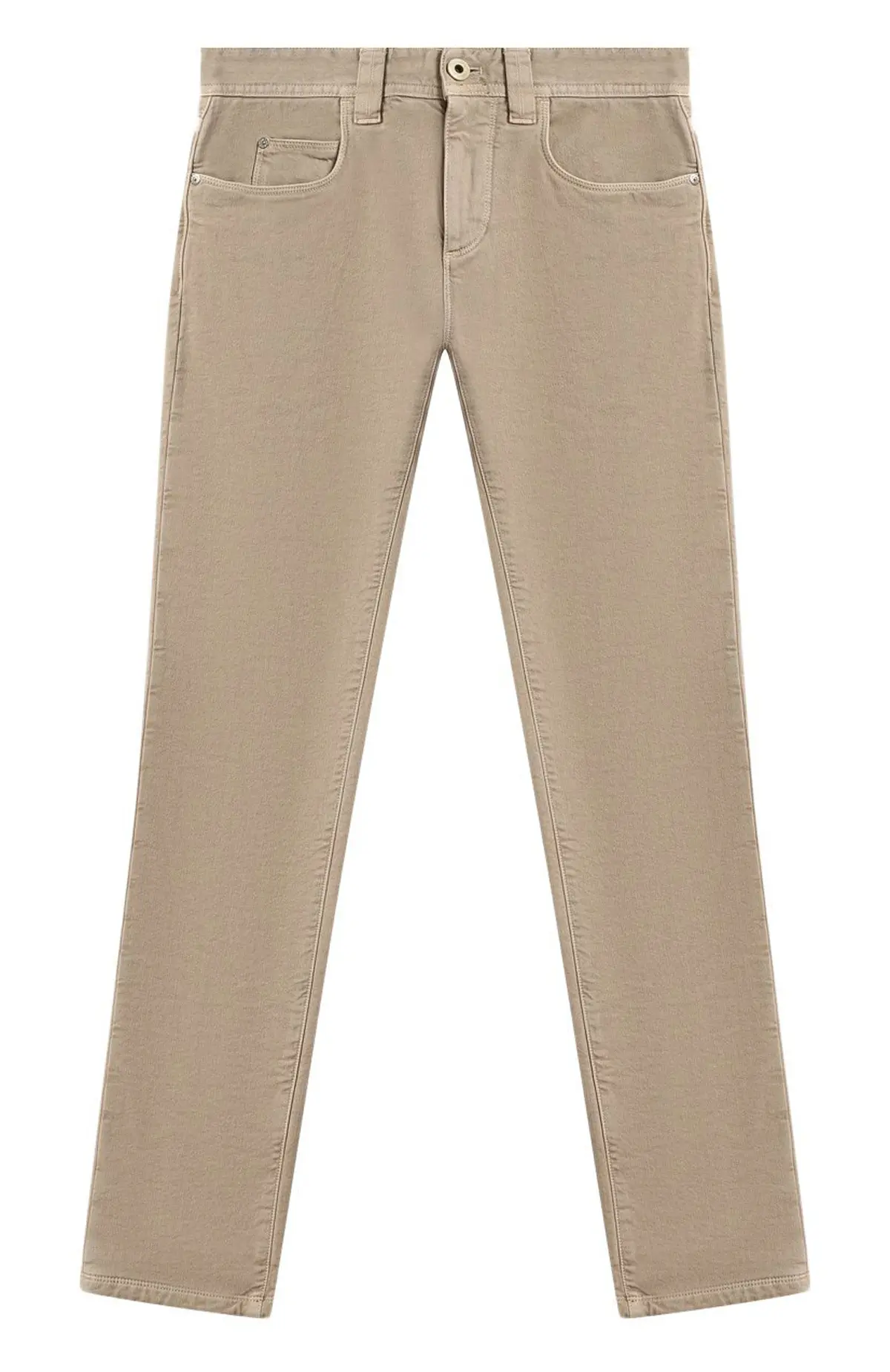 Джинсы Loro Piana выполнены из мягкого хлопка с добавлением эластана, обеспечивающего комфорт и свободу движений. Классический бежевый оттенок и лаконичный крой делают модель универсальной для повседневных и элегантных образов. Тщательная обработка ткани придаёт изделию приятную на ощупь бархатистую фактуру.