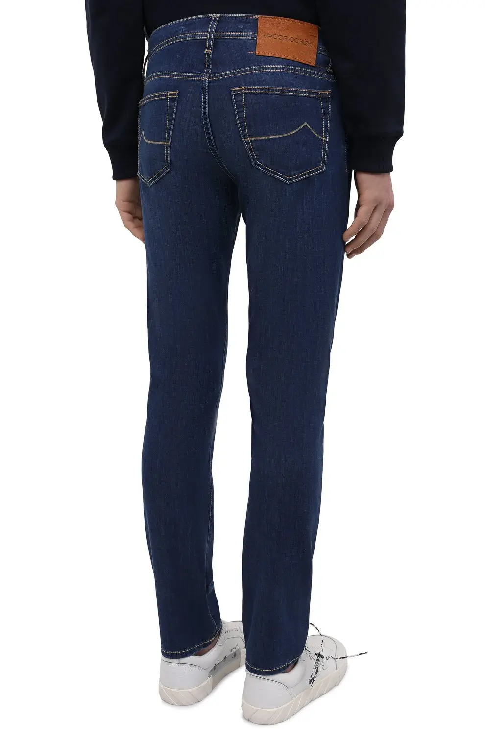 Джинсы зауженного кроя выполнены из мягкого денима с однородной текстурой и деликатным эффектом выцветания. Классическая посадка подчёркивает линию силуэта и обеспечивает комфортное прилегание. Лаконичный дизайн делает модель универсальной основой для повседневных и более собранных образов.