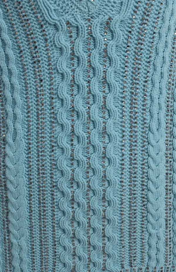 Джемпер от Ermanno Scervino выполнен в фактурной технике крупной вязки с выразительным узором «косы». Модель с глубоким V-образным вырезом дополнена деликатным блеском нити, который придает изделию изысканный акцент. Универсальный крой позволяет сочетать джемпер как с повседневными, так и с более элегантными образами.