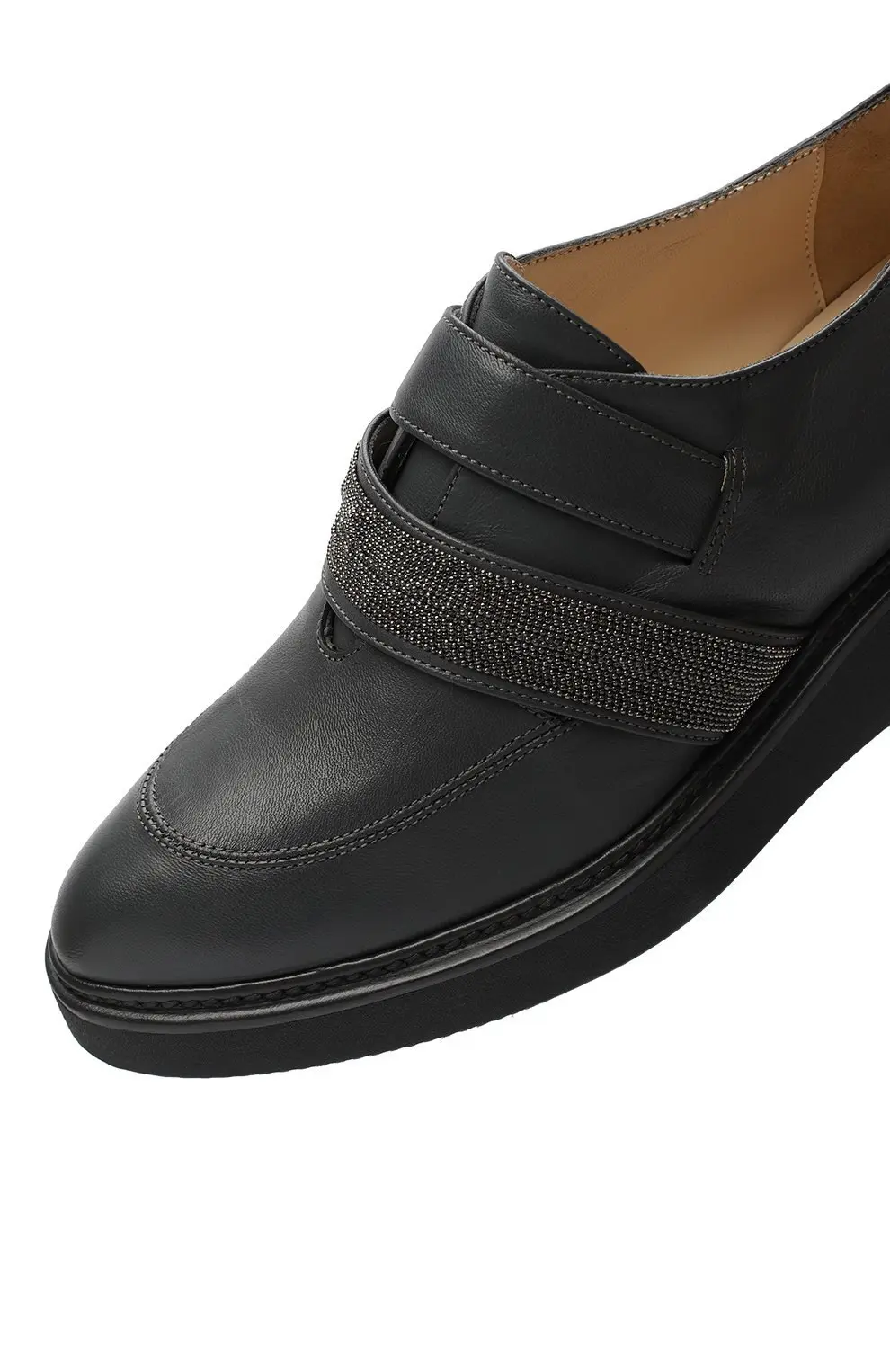 Ботинки Eleonora от Fabiana Filippi сочетают строгую форму с современным акцентом — кожаный верх дополнен широкой эластичной вставкой с сияющей отделкой. Плотная подошва придает устойчивость, а минималистичный дизайн позволяет носить пару и с брюками, и с юбками, создавая разные по настроению образы. Эти ботинки подойдут для повседневной носки и придадут образу сдержанную элегантность.
