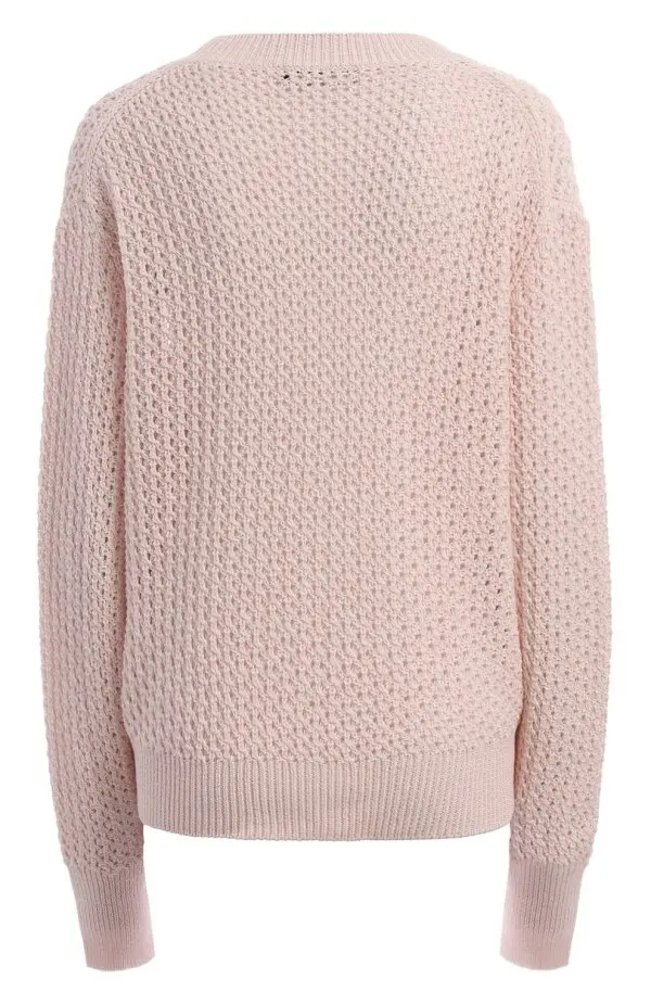 Джемпер выполнен из смеси хлопка и льна и отличается объемной фактурной вязкой. Мягкий розовый оттенок подчеркивает женственность модели, а эластичные манжеты и низ обеспечивают удобную посадку. Универсальная вещь, которая подойдет и для повседневных образов, и для более нарядных сочетаний.