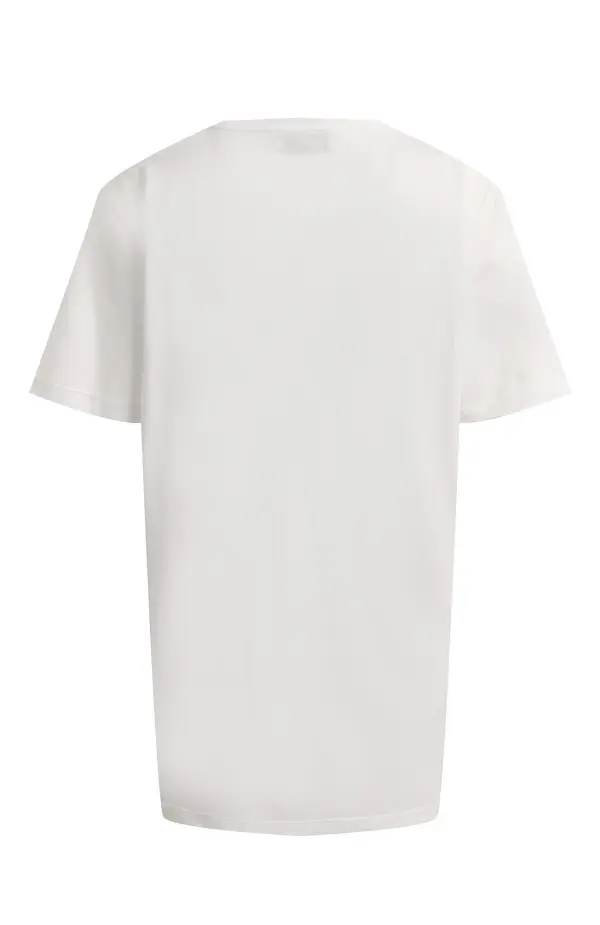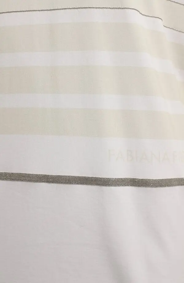 Футболка Fabiana Filippi выполнена из мягкого, дышащего хлопка премиального качества. Минималистичный дизайн украшен деликатным принтом в виде горизонтальных полос в нейтральных оттенках — фирменный приём бренда, подчеркивающий утончённость и гармонию линий. Прямой крой обеспечивает комфорт и свободу движений.