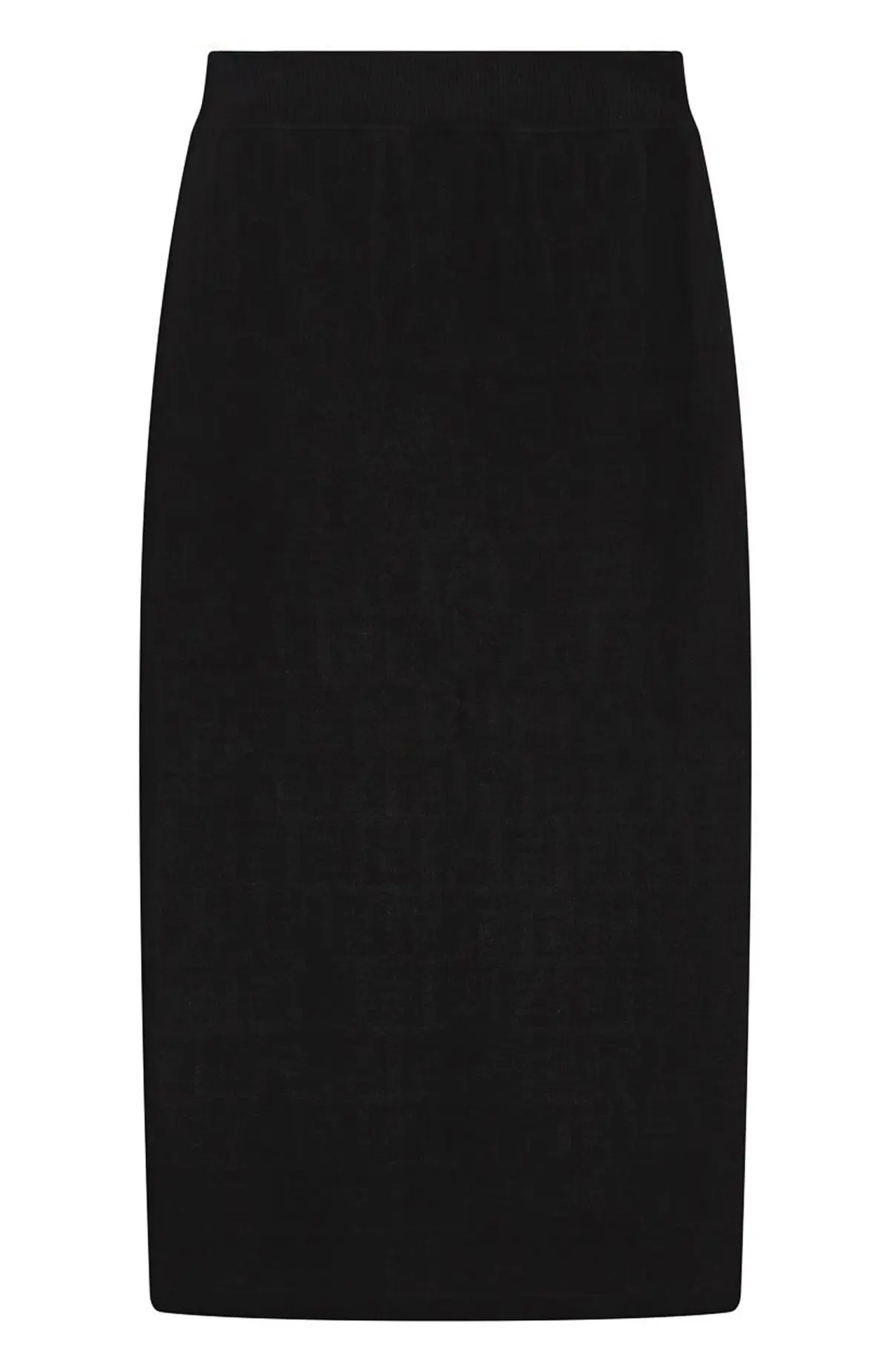 Юбка Fendi выполнена из мягкой вискозы с лёгким блеском, создающим элегантную фактуру. Лаконичный крой длины миди подчёркивает силуэт, а эластичный пояс обеспечивает комфортную посадку. В тонком рельефном узоре угадывается фирменный мотив FF, добавляющий утончённости. Эта модель идеально подойдёт для создания современного образа в стиле smart casual — с укороченным жакетом, кашемировым джемпером или классической сорочкой.