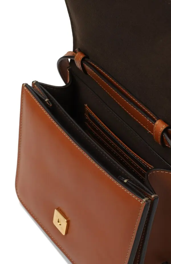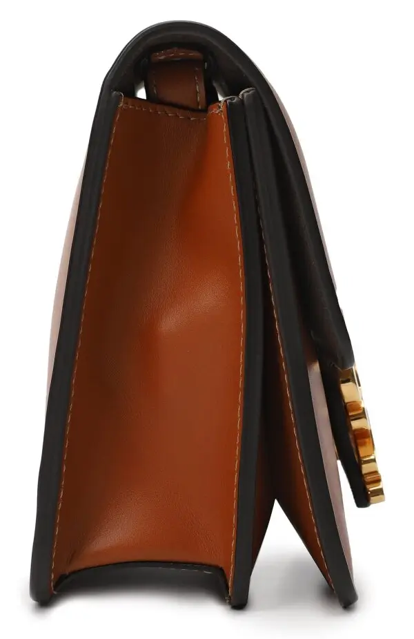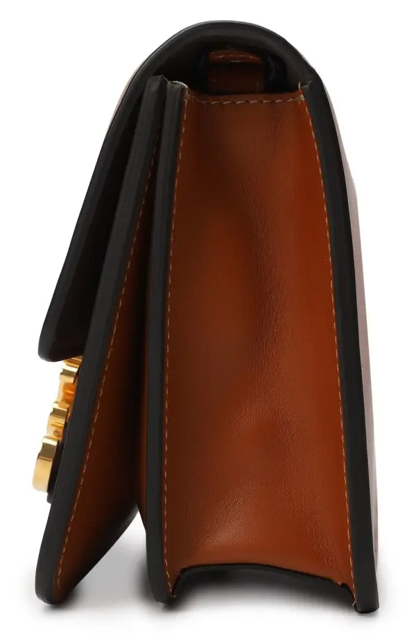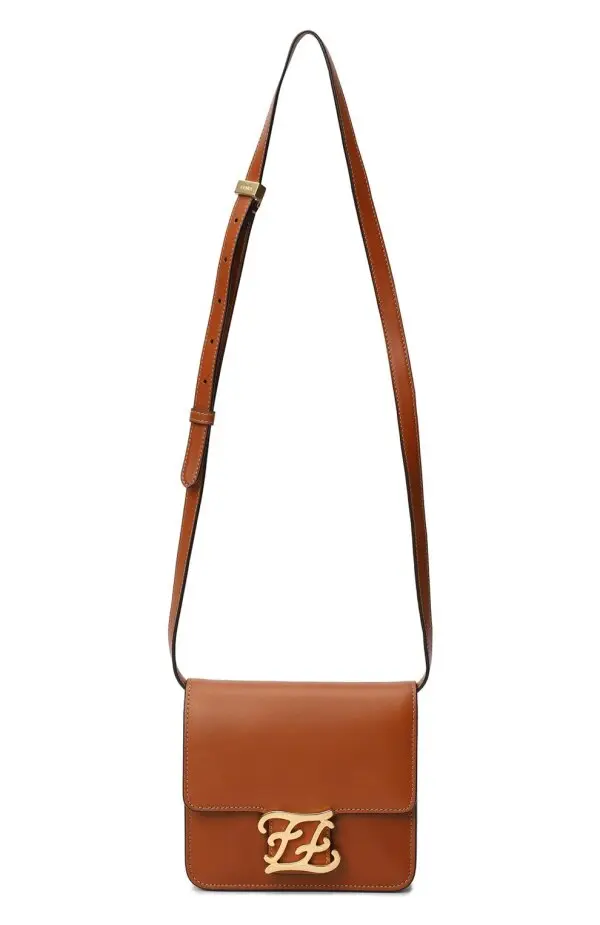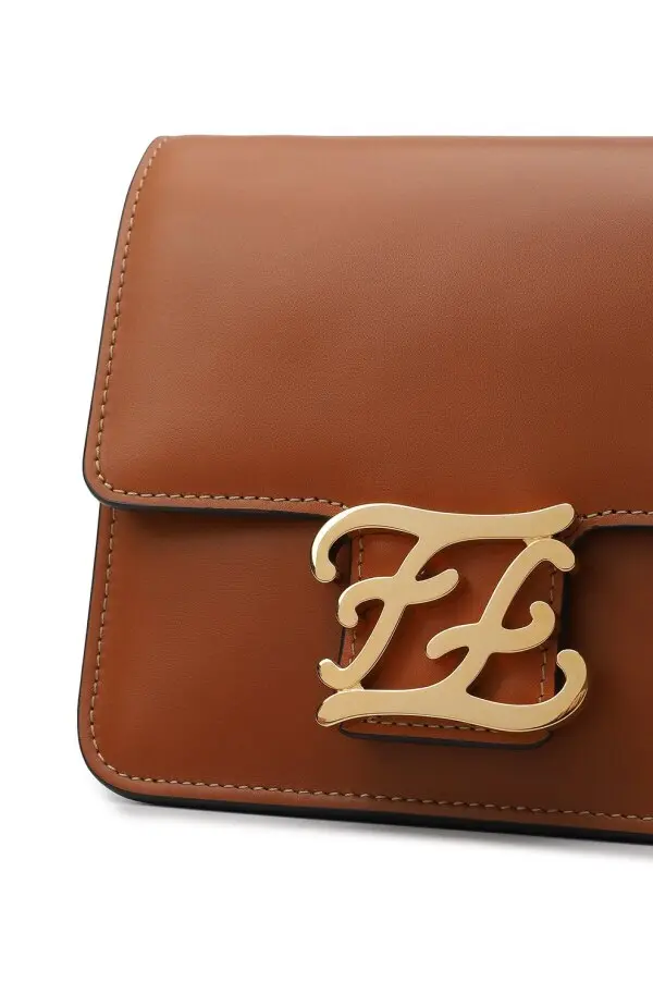 Сумка Karligraphy от Fendi выполнена из гладкой кожи тёплого коричневого оттенка и украшена крупной золотистой пряжкой с изящным логотипом FF в каллиграфическом стиле. Компактная форма с клапаном делает её удобной для повседневного использования, сохраняя при этом элегантность. Такой аксессуар легко подчеркнёт утончённость образа и станет акцентом в сочетании с любым нарядом.