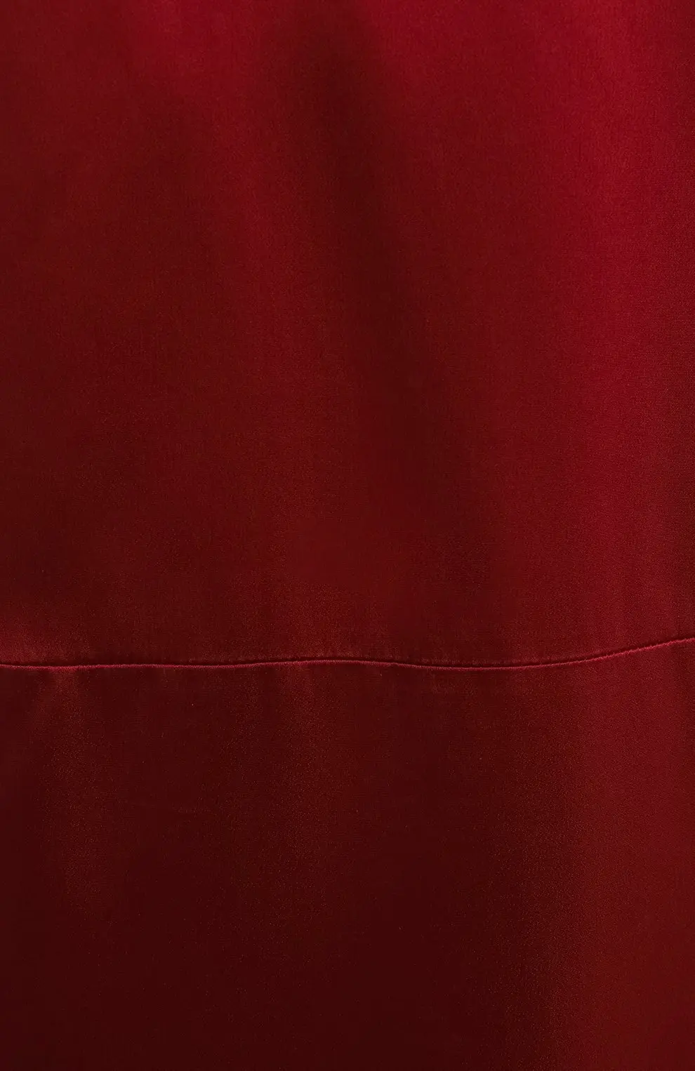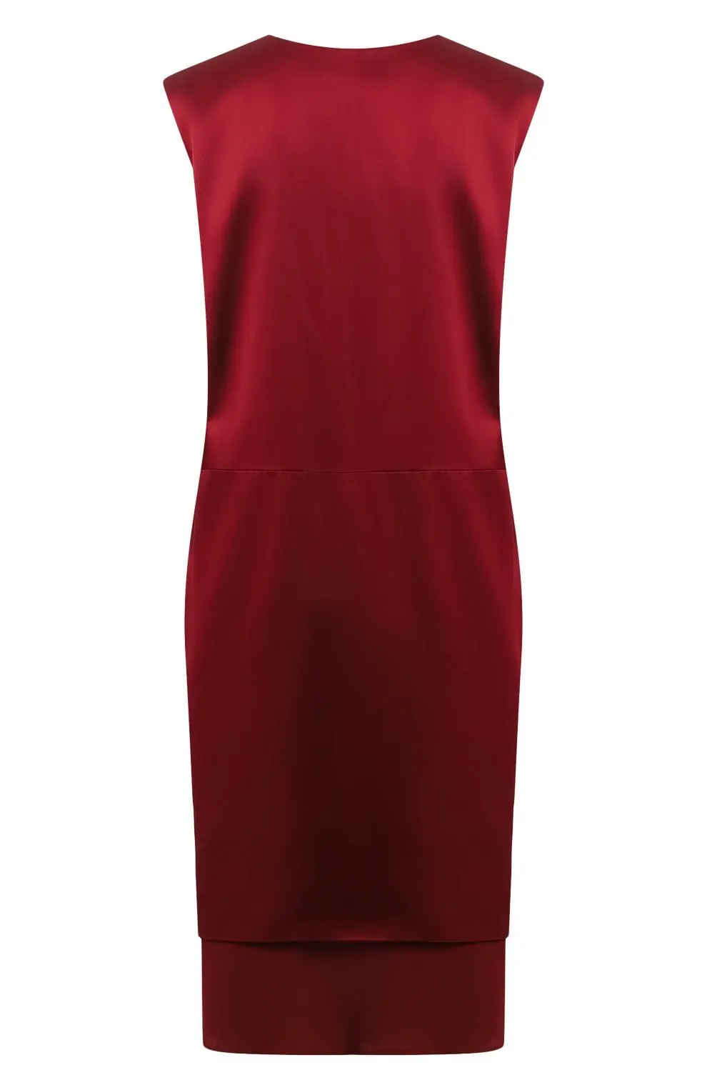 Минималистичное платье Salvatore Ferragamo выполнено из гладкой вискозы глубокого винного оттенка. Лаконичный крой без рукавов с V-образным вырезом подчёркивает элегантность и утончённость, а насыщенный цвет добавляет образу выразительности и благородства.