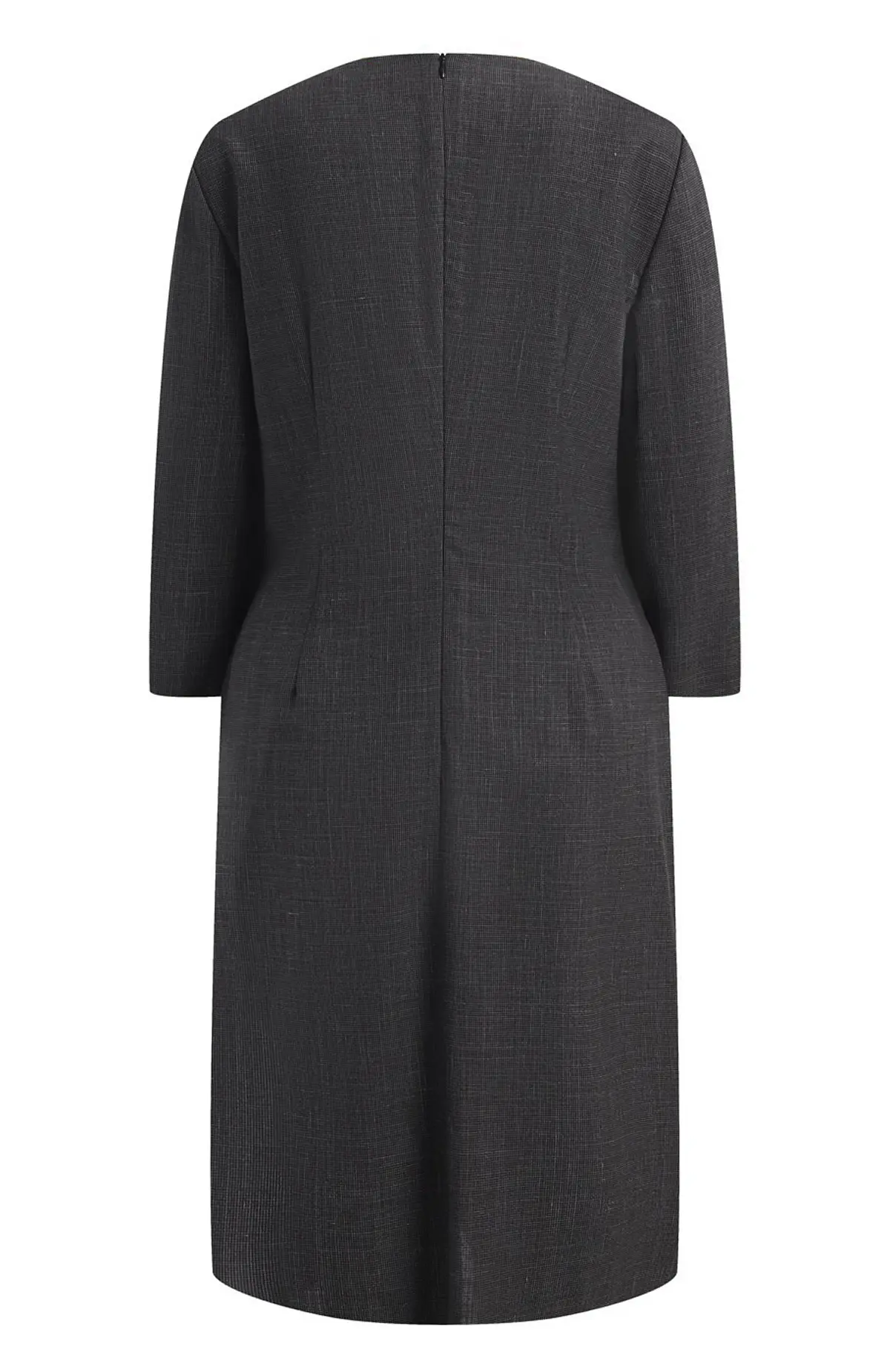 Строгое платье Salvatore Ferragamo сшито из благородного микса шерсти и льна, благодаря чему держит форму и при этом остается комфортным в течение дня. Лаконичный прямой силуэт с округлым вырезом и рукавами три четверти подчеркивает деловой характер модели и мягко обрисовывает фигуру. Носите его с лаконичными лодочками и структурированной сумкой для безупречного офисного образа или деловых встреч.