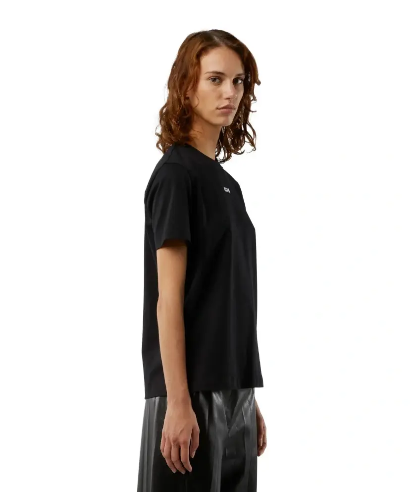 Однотонная хлопковая футболка MSGM с круглым вырезом. Спереди на футболке — небольшой логотип бренда. Модель имеет прямой крой и легко будет сочетаться с большинством базовых вещей гардероба. Предлагаем использовать футболку для создания многослойных образов.