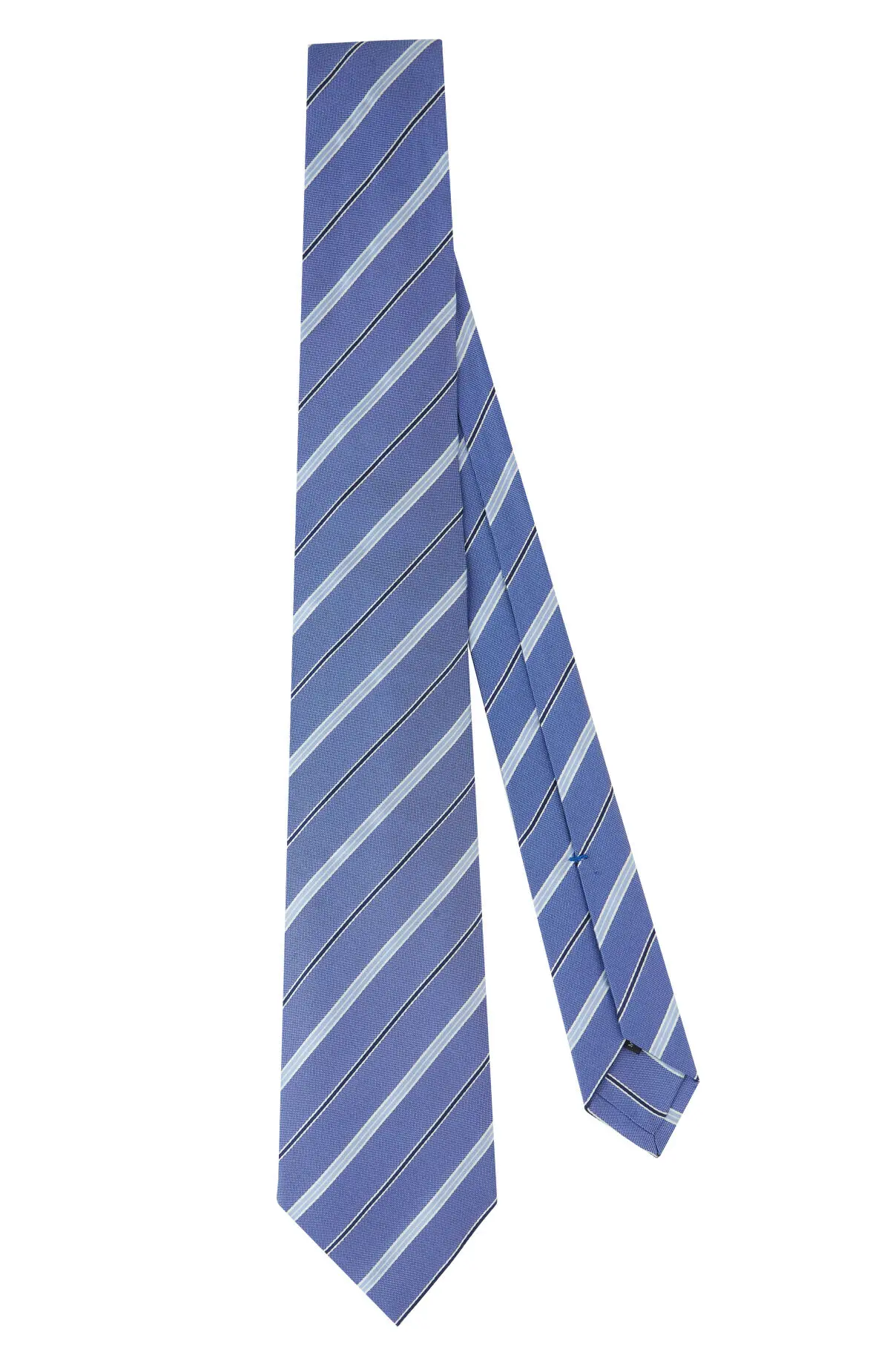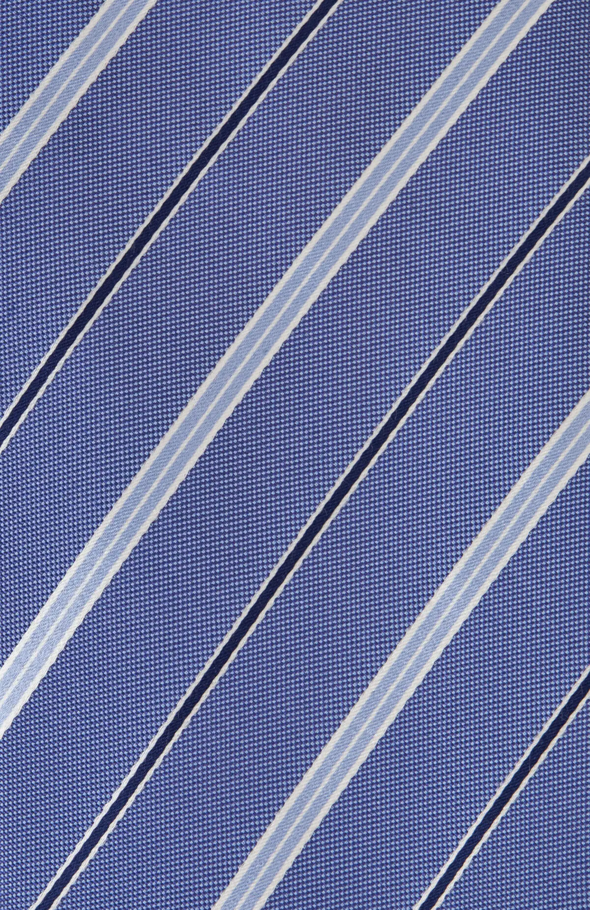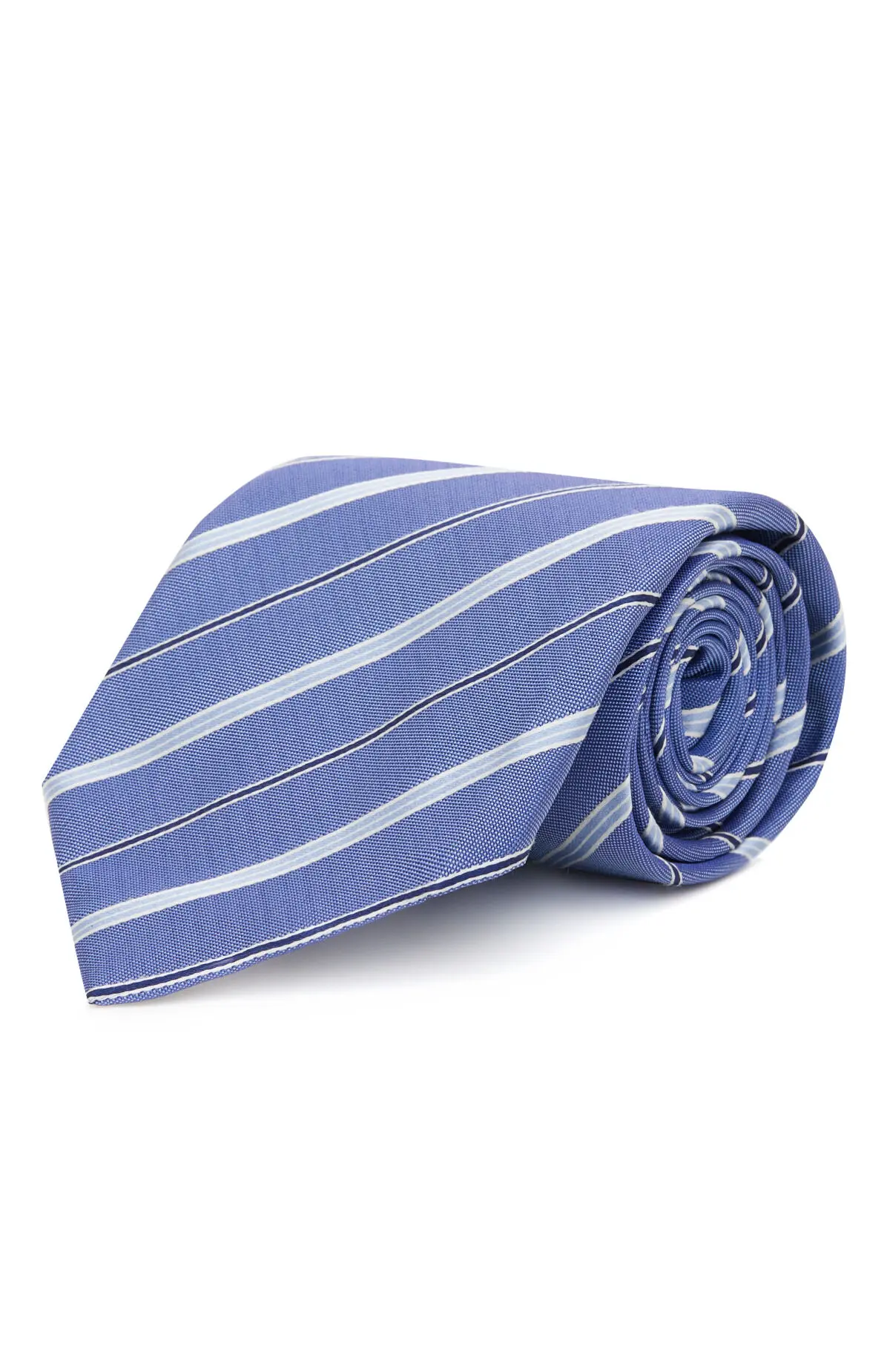 Модель выполнена из гладкого материала с лёгким блеском и диагональным рисунком в оттенках синего. Плотная фактура хорошо держит форму узла и подчёркивает линию лацканов. Классическая ширина и сдержанная палитра легко вписываются в деловой гардероб.