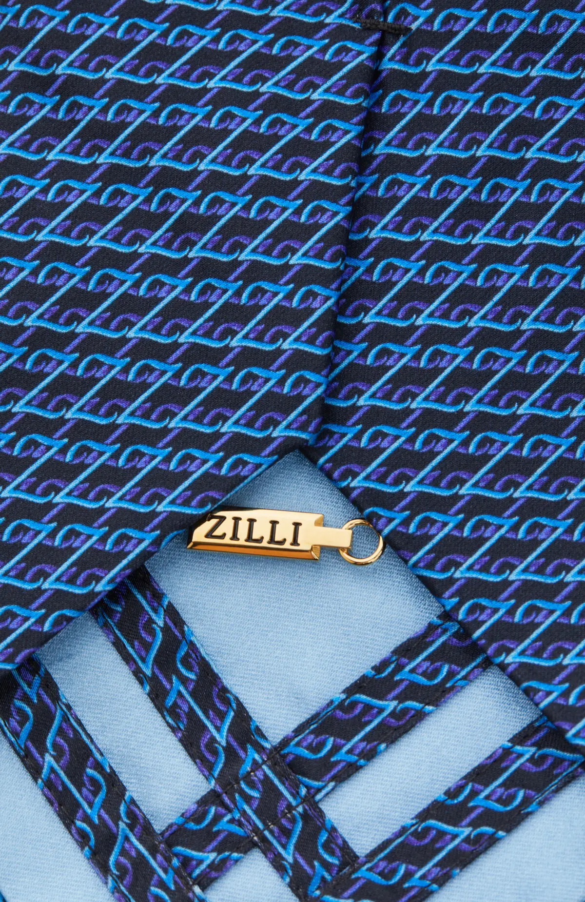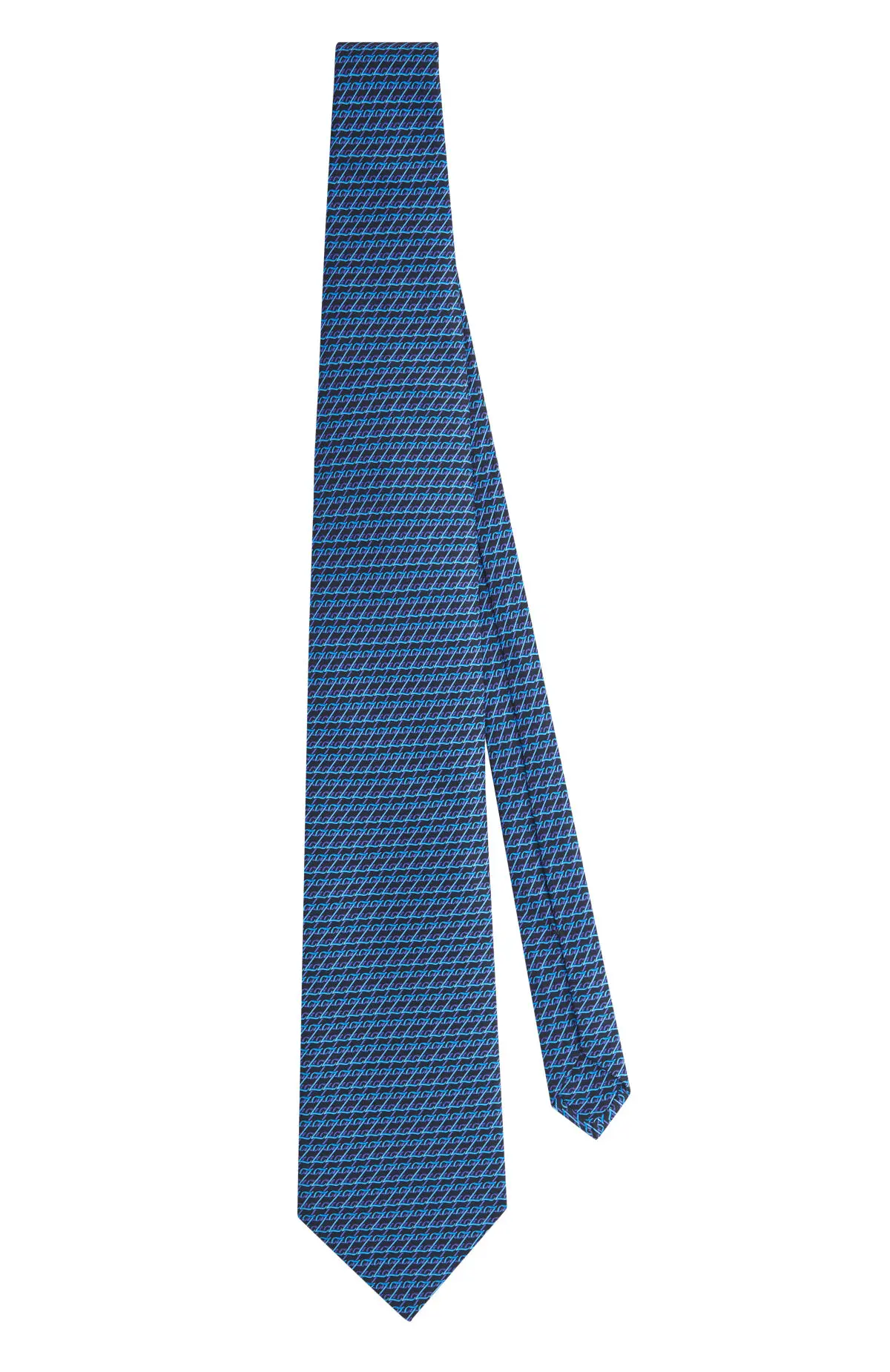 Выполнен из гладкого материала с сатиновым блеском и графичным микроузором в насыщенных оттенках синего. Упругое полотно уверенно держит форму узла и подчёркивает линию лацканов. Сдержанный, но современный рисунок добавляет аккуратный акцент к классическим костюмам.