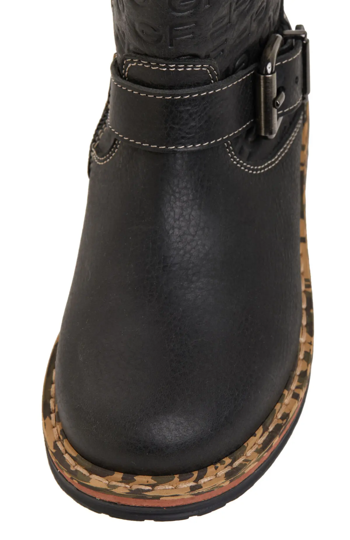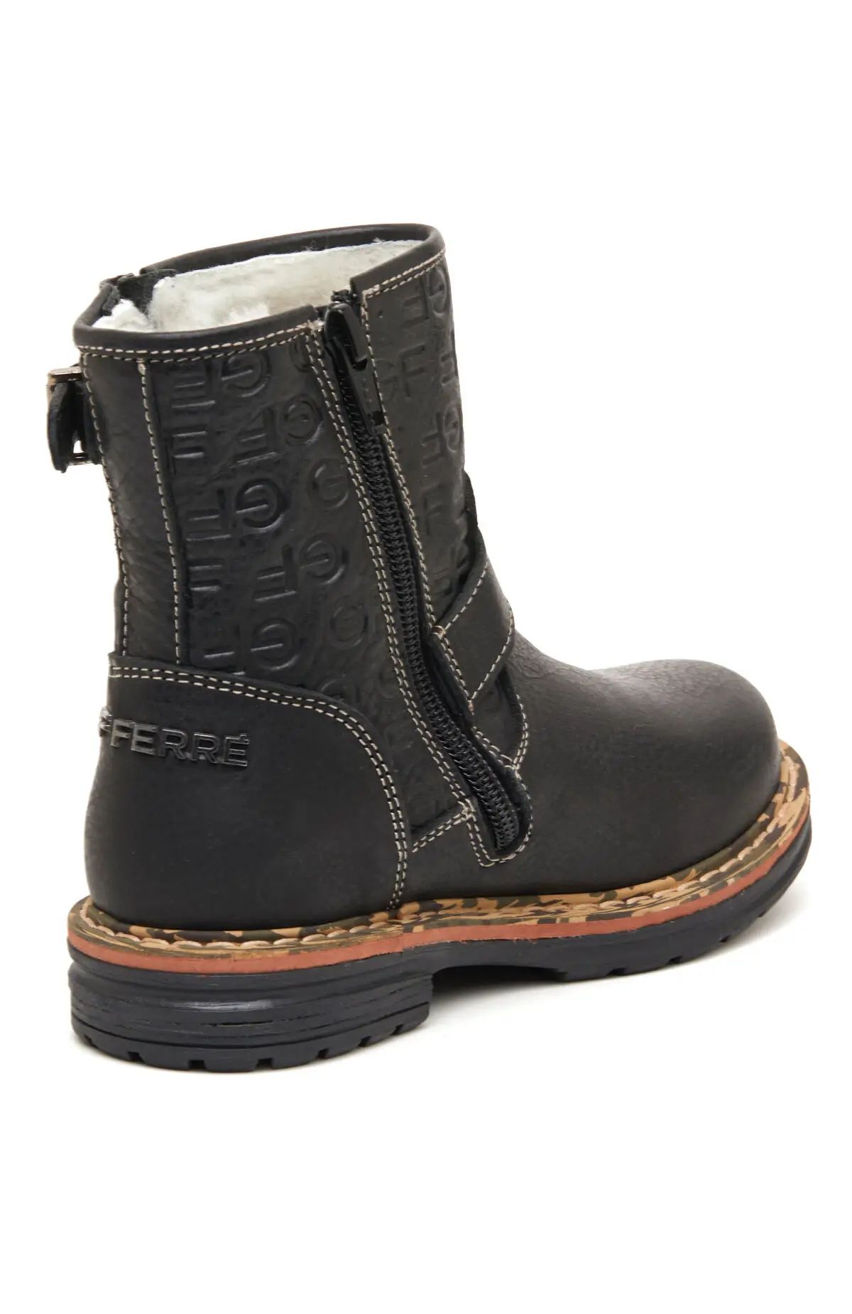 Лаконичные детские ботинки GF Ferre из мягкой натуральной кожи с тиснением логотипа на голенище. Утеплённая подкладка, боковая молния и ремешки с пряжками обеспечивают комфортную посадку и быстрый надевание, контрастная прострочка подчёркивает фактуру. Рифлёная подошва с хорошим сцеплением подходит для повседневной носки в холодный сезон и легко сочетается с джинсами, паркой или пуховиком.