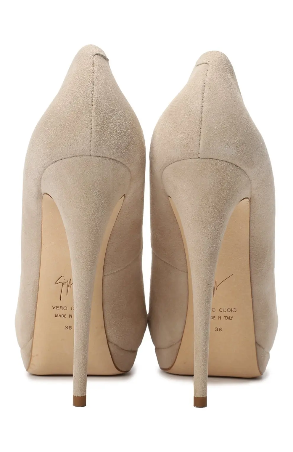 Туфли Sharon от Giuseppe Zanotti Design – воплощение женственности и утончённого стиля. Модель выполнена из мягкой замши в светлом нюдовом оттенке, дополнена изящным вырезом peep-toe и устойчивой платформой, визуально смягчающей впечатляющую шпильку. Гармония элегантного силуэта и премиальных материалов делает эту пару идеальным выбором для особых случаев и вечерних выходов.