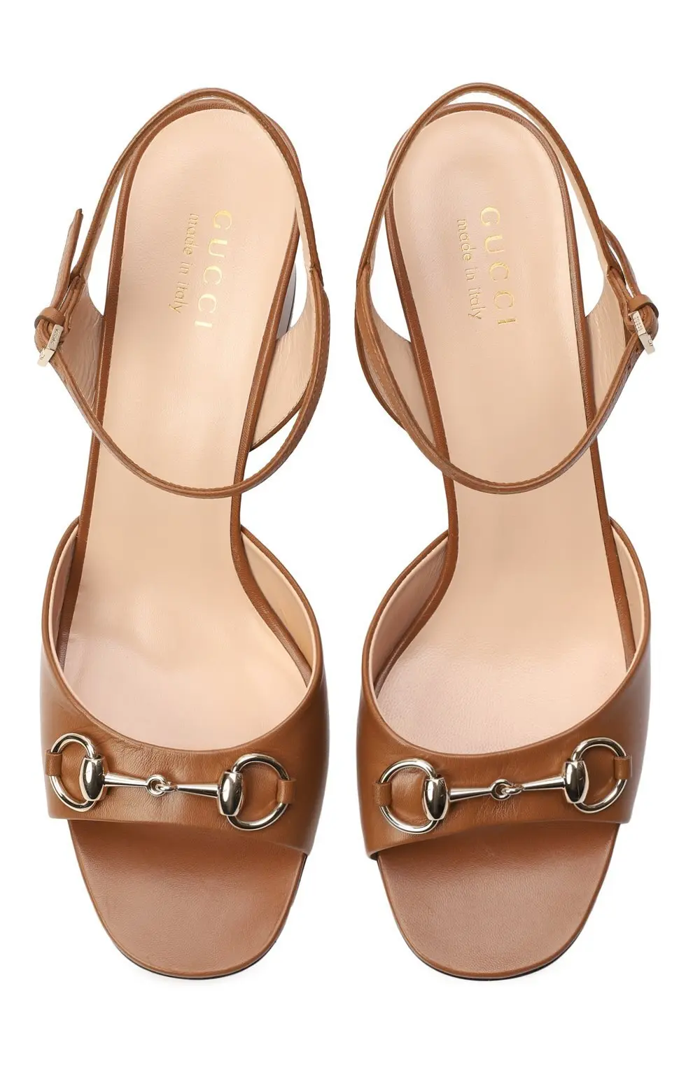 Босоножки Horsebit от Gucci выполнены из гладкой кожи тёплого карамельного оттенка. Модель украшена фирменной металлической пряжкой Horsebit, придающей образу элегантность. Удобный широкий каблук обеспечивает комфорт при носке. Идеальный вариант как для повседневных выходов, так и для особых случаев.