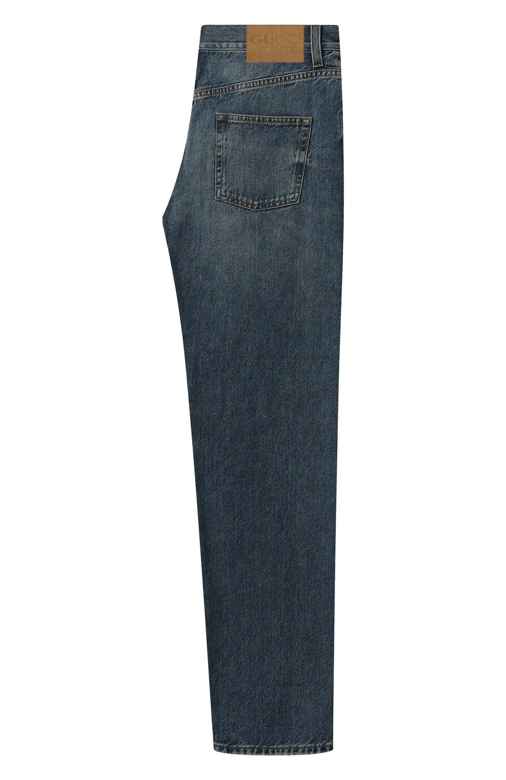 Джинсы Gucci из хлопкового денима с лёгким эффектом потертостей. Классический прямой крой подчеркивает универсальность модели. Отличный выбор для повседневного стиля с акцентом на комфорт и качество.