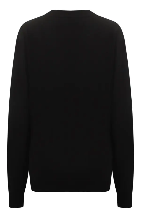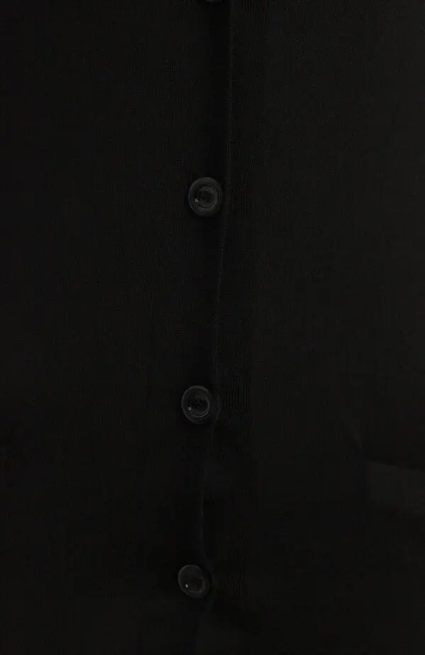 Кардиган Gucci из шерсти. Классическая модель на пуговицах выполнена в чёрном цвете с V-образным вырезом. Лаконичный дизайн подчёркивает универсальность вещи — кардиган легко впишется как в повседневный, так и в более строгий образ, добавляя элегантности и комфорта.