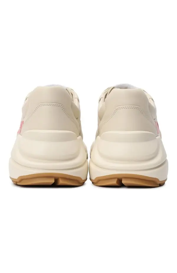 Кроссовки Gucci Rhyton выполнены из мягкой бежевой кожи и отличаются массивной ретро-подошвой, которая придаёт образу дерзкий стритстайл-акцент. Лаконичный силуэт украшен яркой красной надписью GUCCIBAND, подчеркивающей современный и смелый характер модели. Контрастная резиновая подошва обеспечивает комфорт и надежное сцепление, а плотная посадка делает обувь удобной для повседневной носки. Эти кроссовки гармонично сочетают в себе винтажную эстетику и фирменный креативный стиль Дома Gucci.