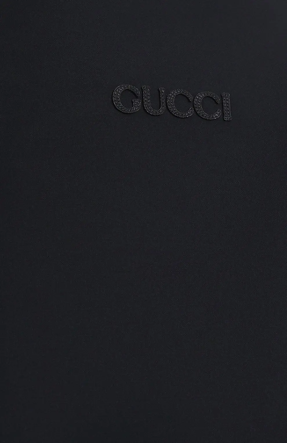 Женский жакет от Gucci выполнен из плотного однотонного материала в чёрном цвете. Модель с высоким воротником-стойкой и застёжкой на молнию отличается лаконичным кроем. Акцентом служит вышитый логотип бренда на груди, придающий изделию сдержанный фирменный характер.