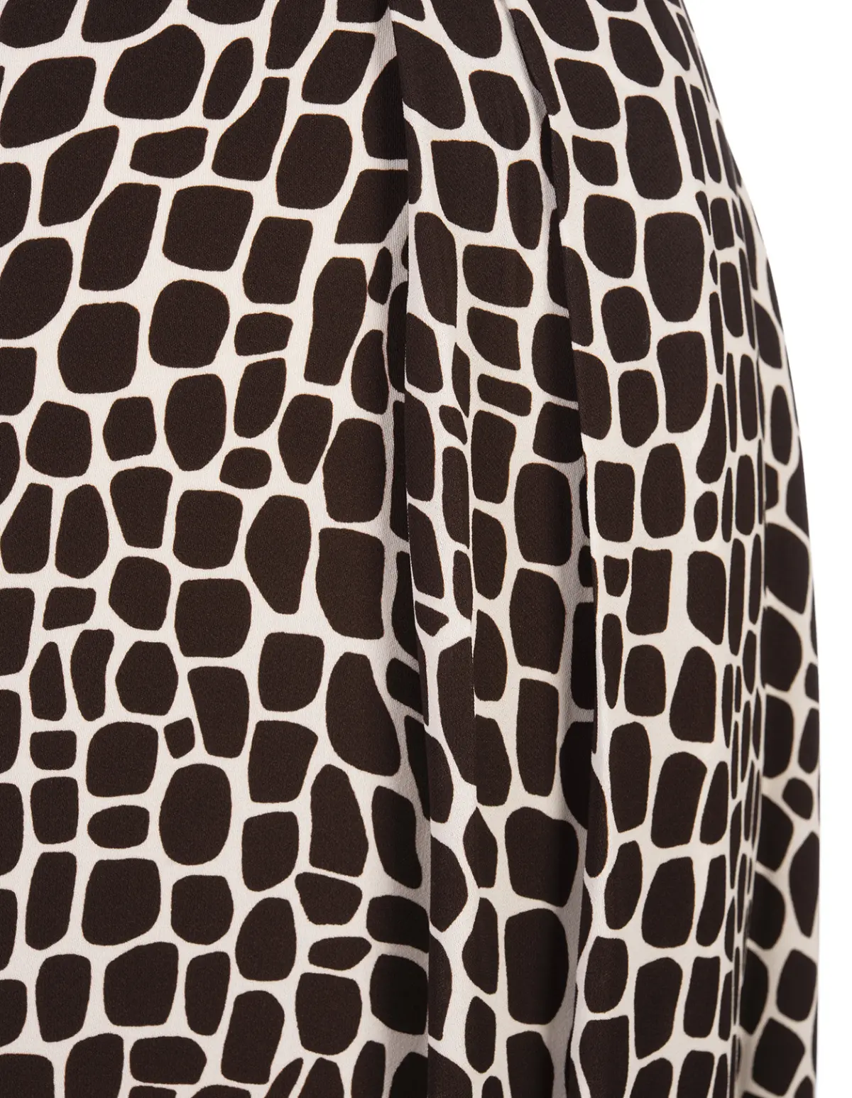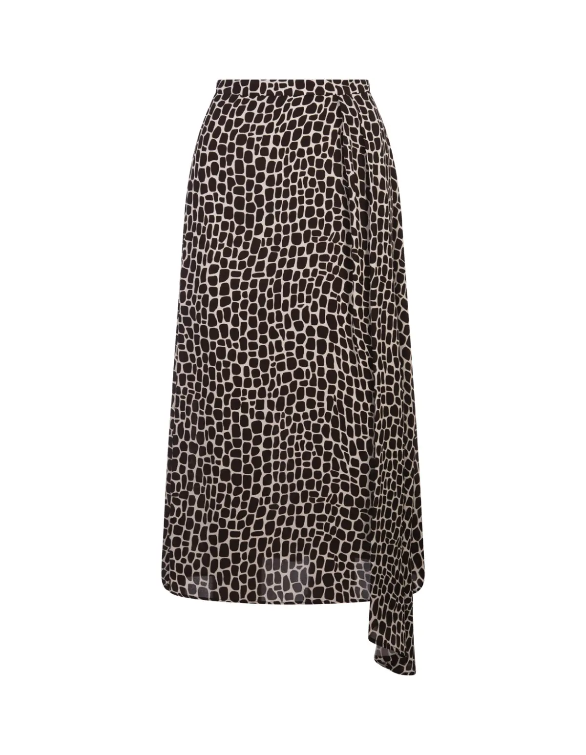 Юбка MSGM с коричневым анималистичным принтом под жирафа. Изделие из струящейся легкой вискозы с ассиметричным дизайном — прекрасный вариант для летних вечеров. Сочетайте с кроп-топами MSGM.