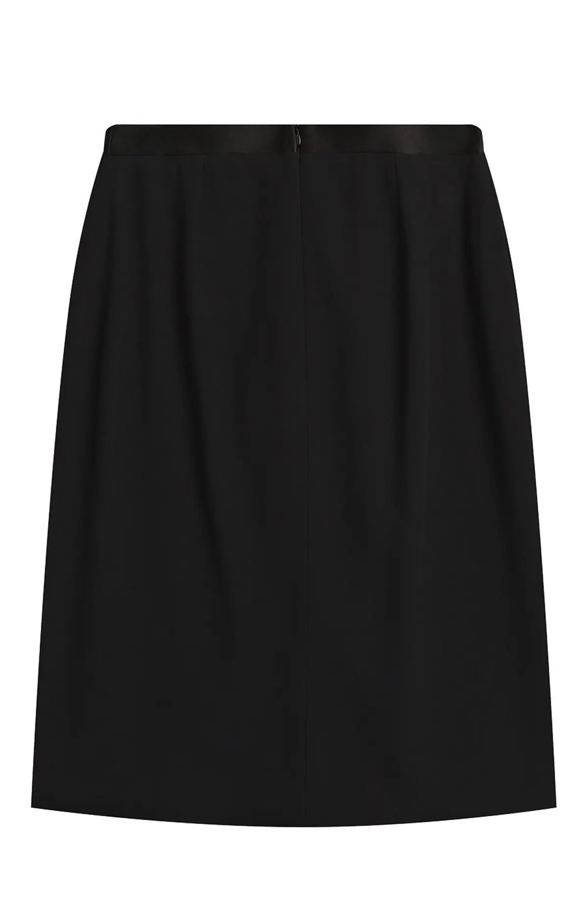 Юбка Alexander McQueen выполнена из плотной черной ткани с элегантной атласной отделкой. Асимметричный декоративный элемент спереди добавляет образу динамики и подчёркивает архитектурный стиль бренда. Минималистичный крой в сочетании с роскошной фактурой делает модель универсальной — она одинаково эффектно смотрится как с блузой, так и с жакетом.