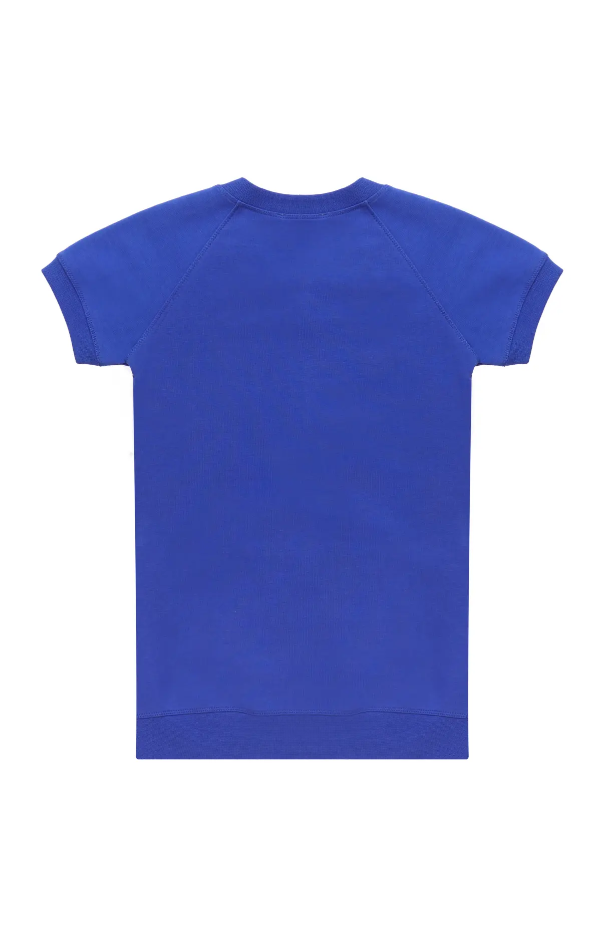 Модель из мягкого хлопкового трикотажа насыщенного синего оттенка. Лаконичный крой с короткими рукавами дополнен аккуратной застёжкой на молнии у выреза и фирменным патчем на рукаве. Универсальный вариант для повседневных образов с характерным акцентом Moncler.