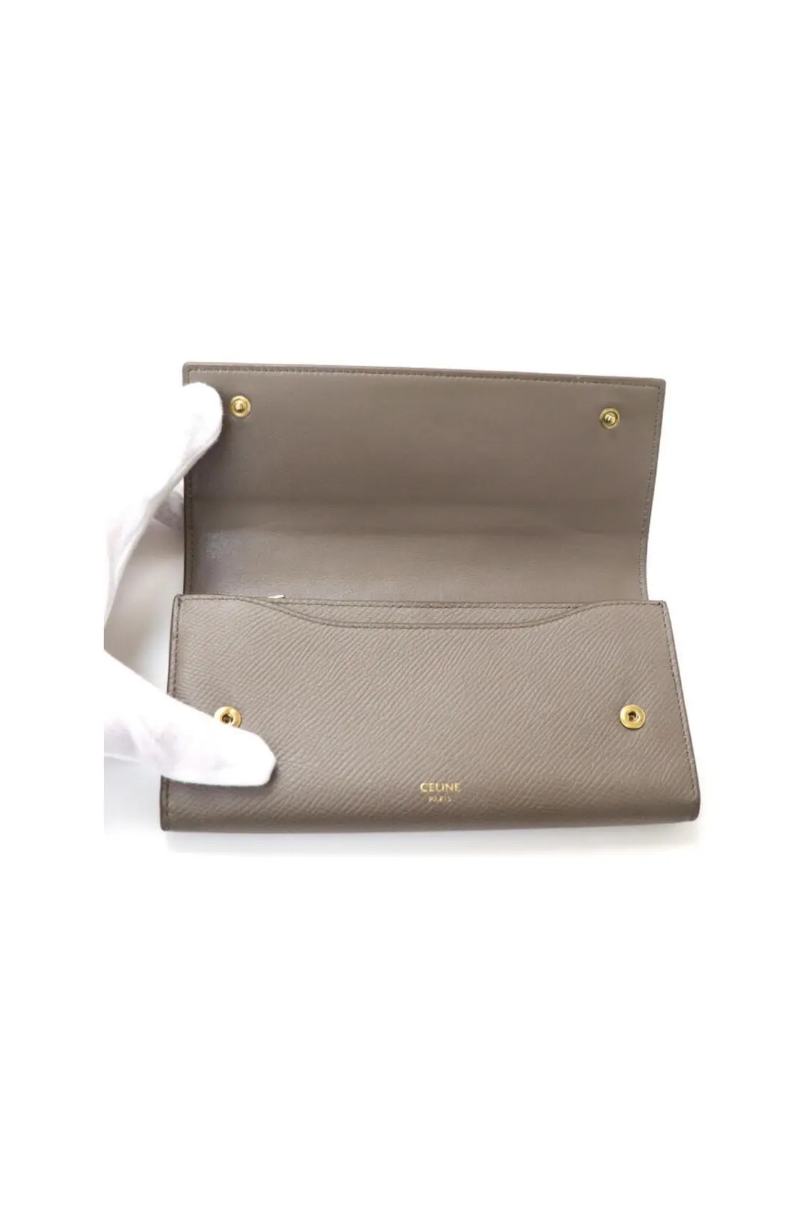 Элегантный и стильный кошелёк от известного бренда Celine станет прекрасным дополнением к вашему образу. Он выполнен из высококачественной зернёной телячьей кожи серого цвета, которая отличается прочностью и долговечностью. Кошелёк имеет большой клапан, который надёжно закрывается на магнитную застёжку. Внутри есть несколько отделений для купюр, монет и кредитных карт. Благодаря компактным размерам кошелёк удобно носить в сумке или кармане. Этот аксессуар станет отличным выбором для тех, кто ценит качество, стиль и функциональность.