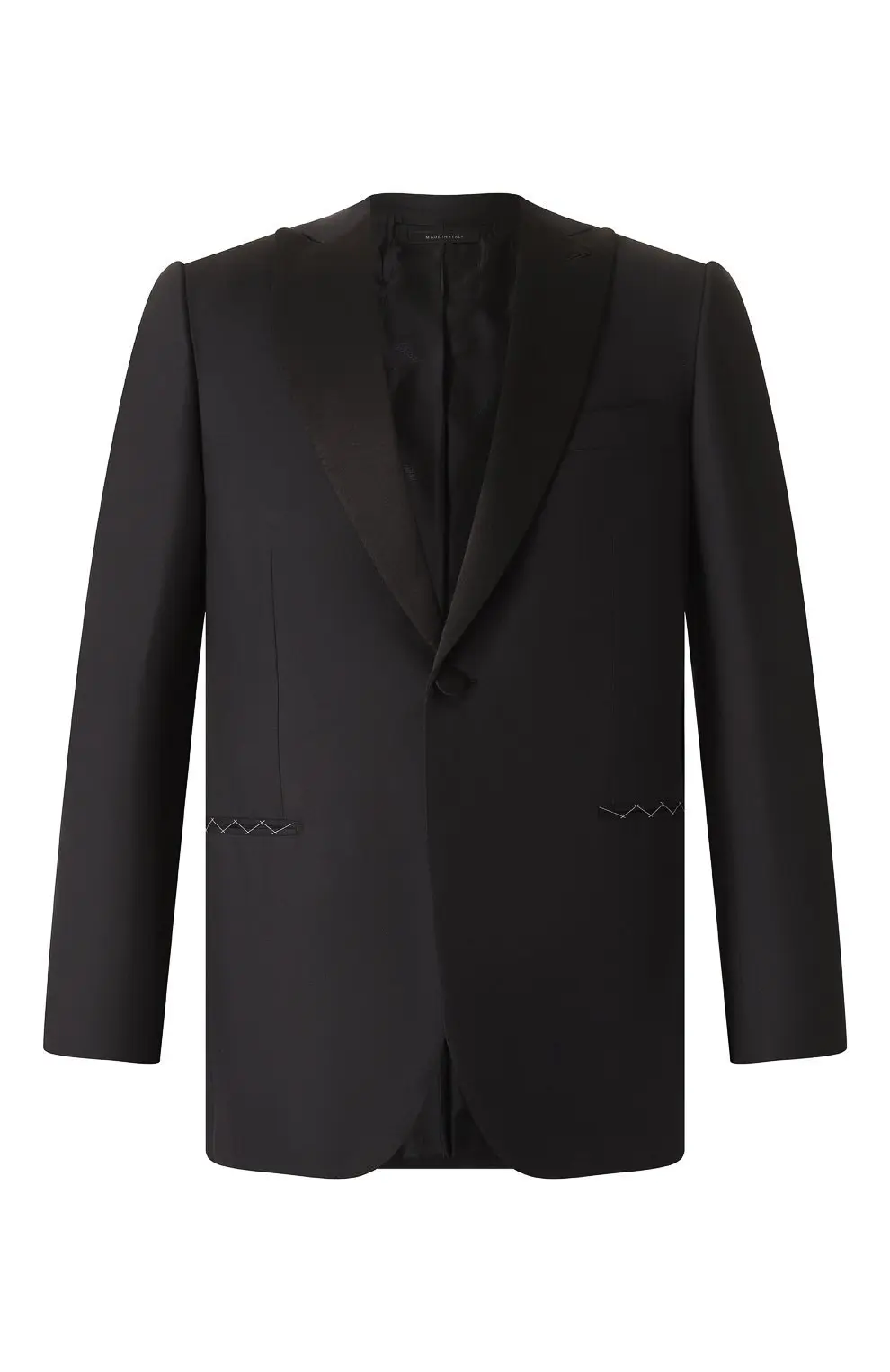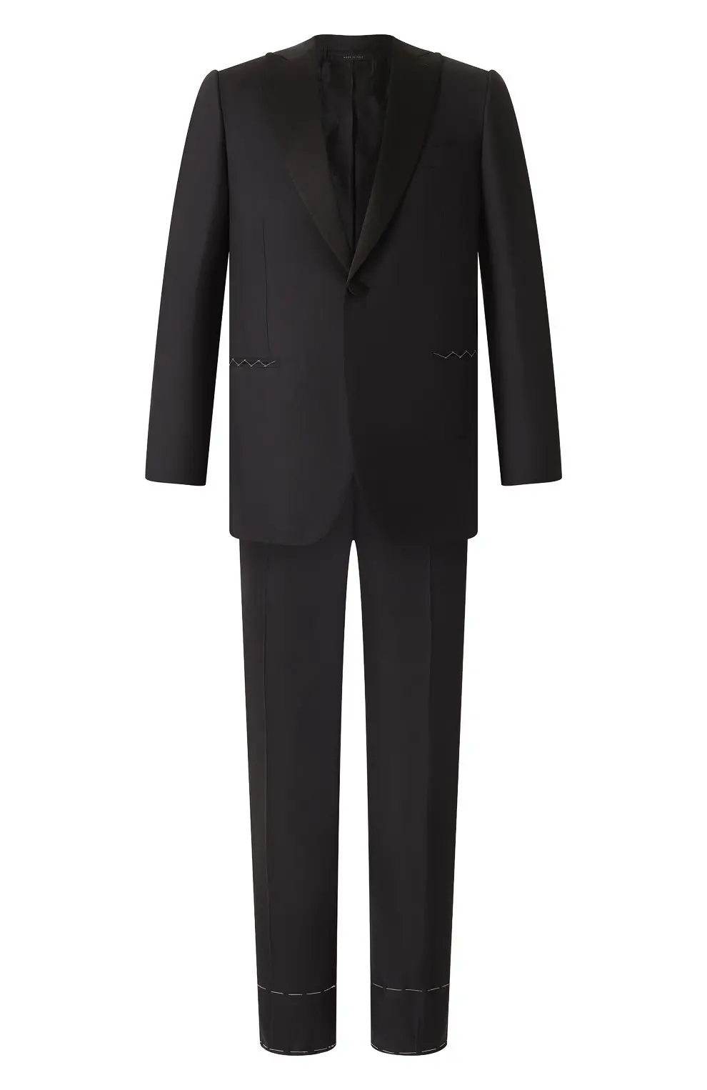 Этот костюм Brioni создан для безупречного вечернего образа. Он выполнен из высококачественной шерсти и дополнен атласными лацканами, подчеркивающими элегантный силуэт. Однобортный пиджак с застёжкой на одну пуговицу и классические брюки со стрелками формируют гармоничный ансамбль для торжественных мероприятий. Традиционный крой и тонкая работа мастеров делают костюм образцом итальянского стиля и утончённости.