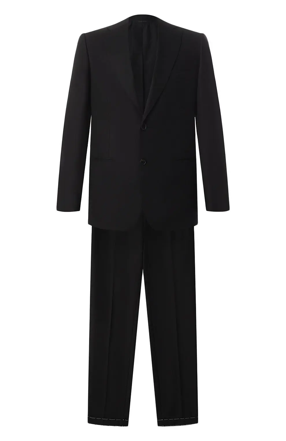 Этот костюм от Brioni представляет собой образец классической итальянской элегантности и утончённого стиля. Однобортный пиджак на двух пуговицах с заострёнными лацканами дополнен идеально скроенными брюками со стрелками, создавая гармоничный и безупречно сбалансированный силуэт. Выполненный из высококачественной шерсти, он отличается лёгкостью, комфортом и долговечностью, что делает его универсальным выбором как для деловых встреч, так и для торжественных событий.