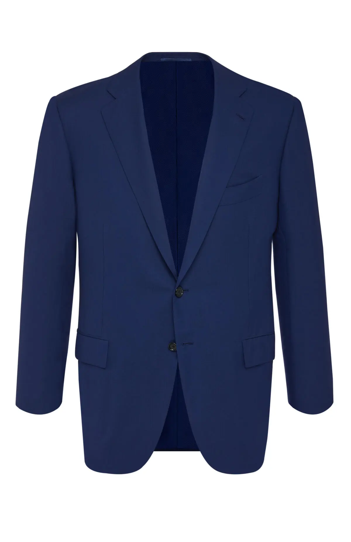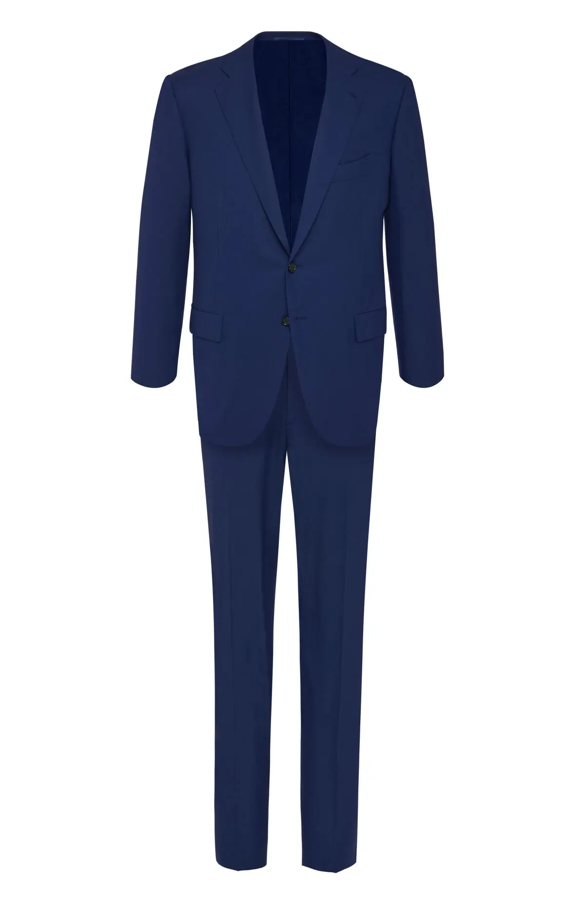 Однобортный костюм глубокого синего оттенка демонстрирует фирменный неаполитанский крой дома Cesare Attolini: мягкая линия плеч, приталенный пиджак на две пуговицы и идеально сидящие прямые брюки визуально вытягивают силуэт. Изделие выполнено из тонкой шерсти, которая держит форму и обеспечивает комфорт в течение всего дня, поэтому модель станет безупречной основой делового и торжественного гардероба.