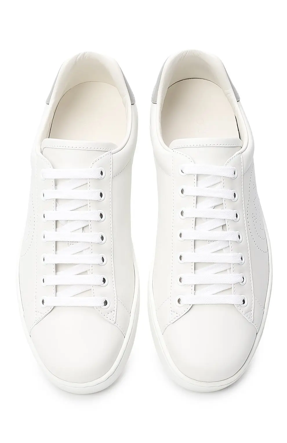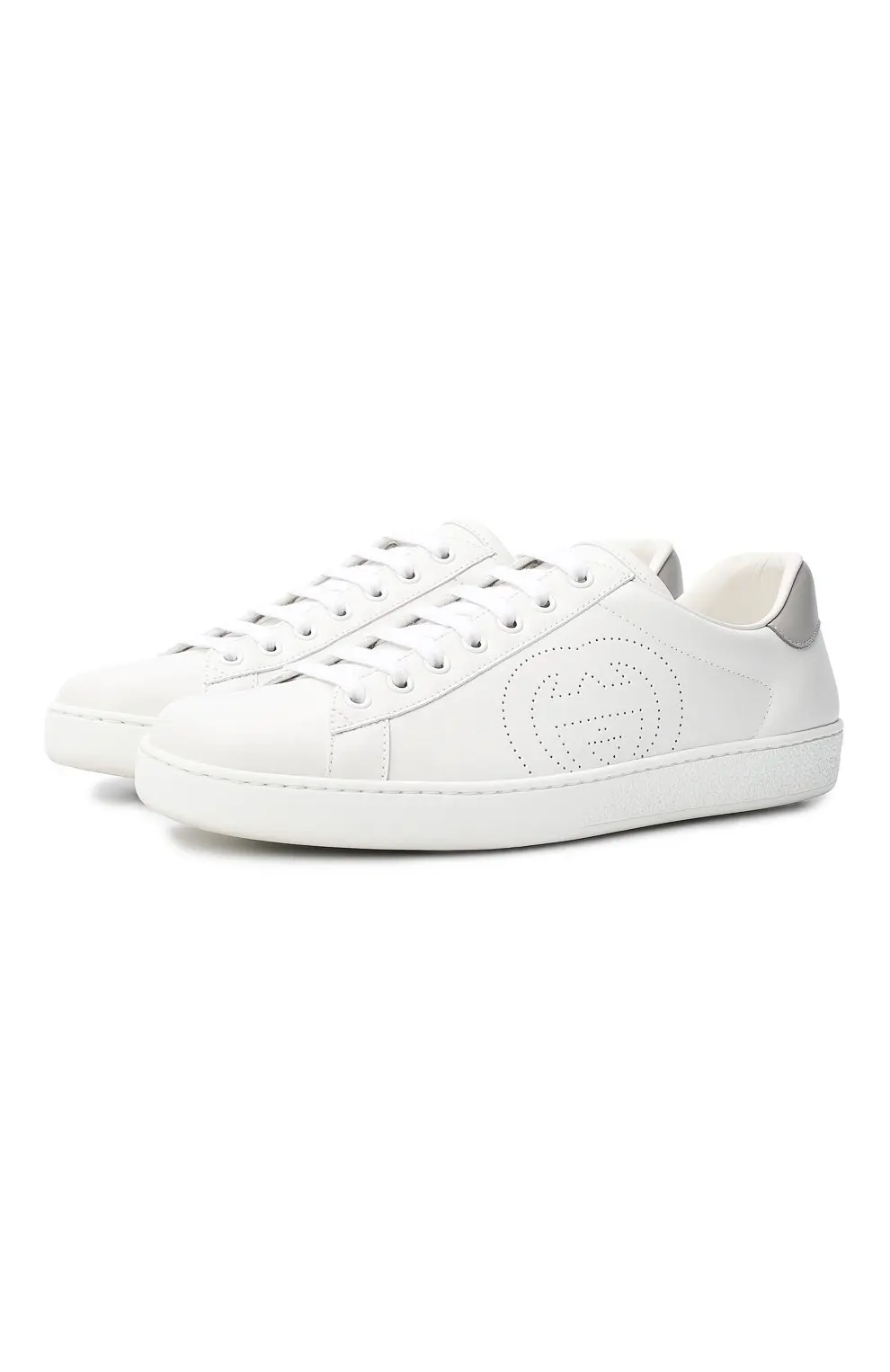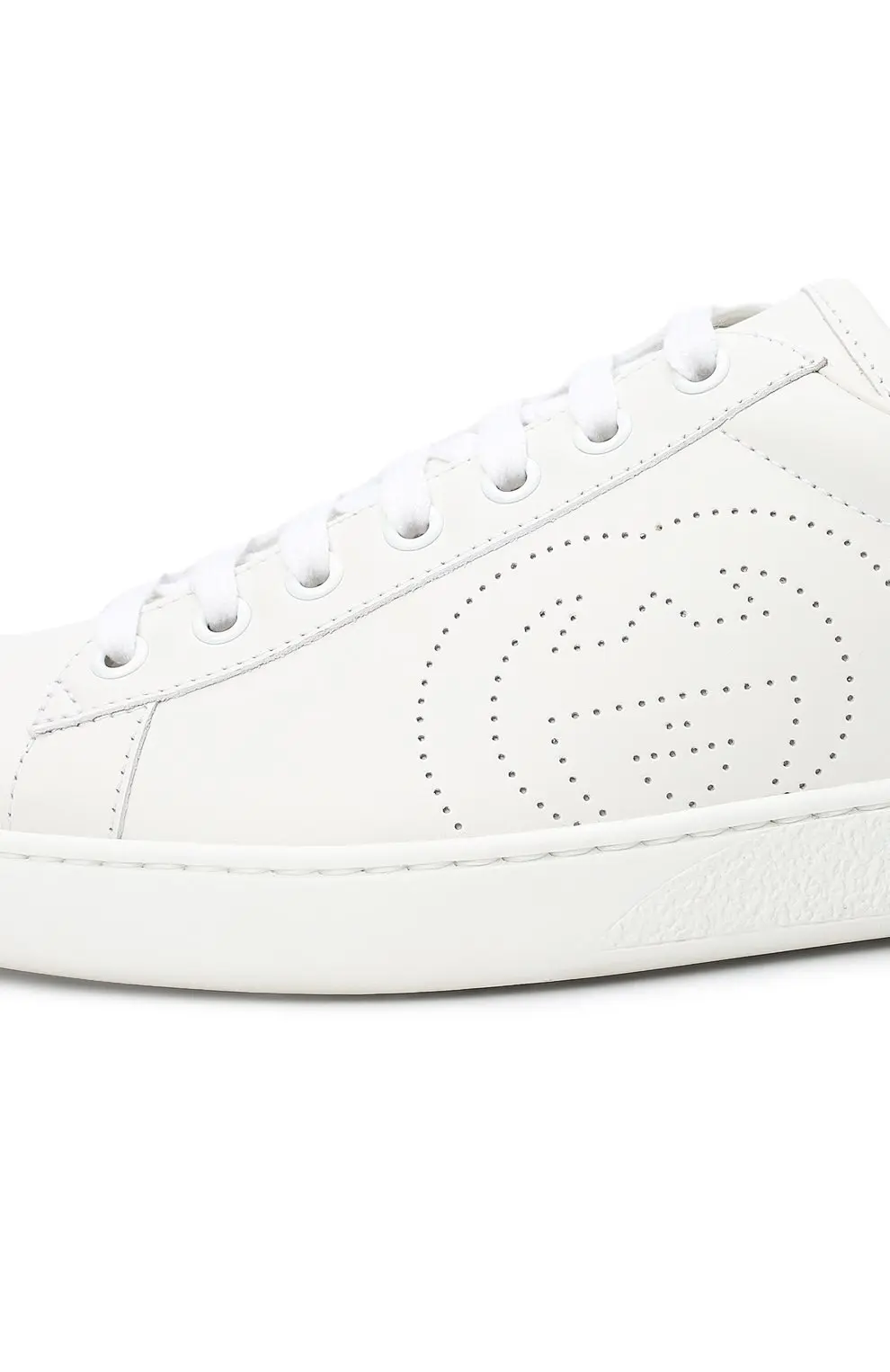 Кеды Gucci Ace выполнены из гладкой белой кожи с перфорацией в виде фирменного монограммы GG. Лаконичный силуэт с низким берцем, круглый носок и удобная резиновая подошва создают универсальный образ, подходящий как для повседневных, так и для более элегантных аутфитов. Декоративная вставка на пятке добавляет модели характерный акцент бренда.