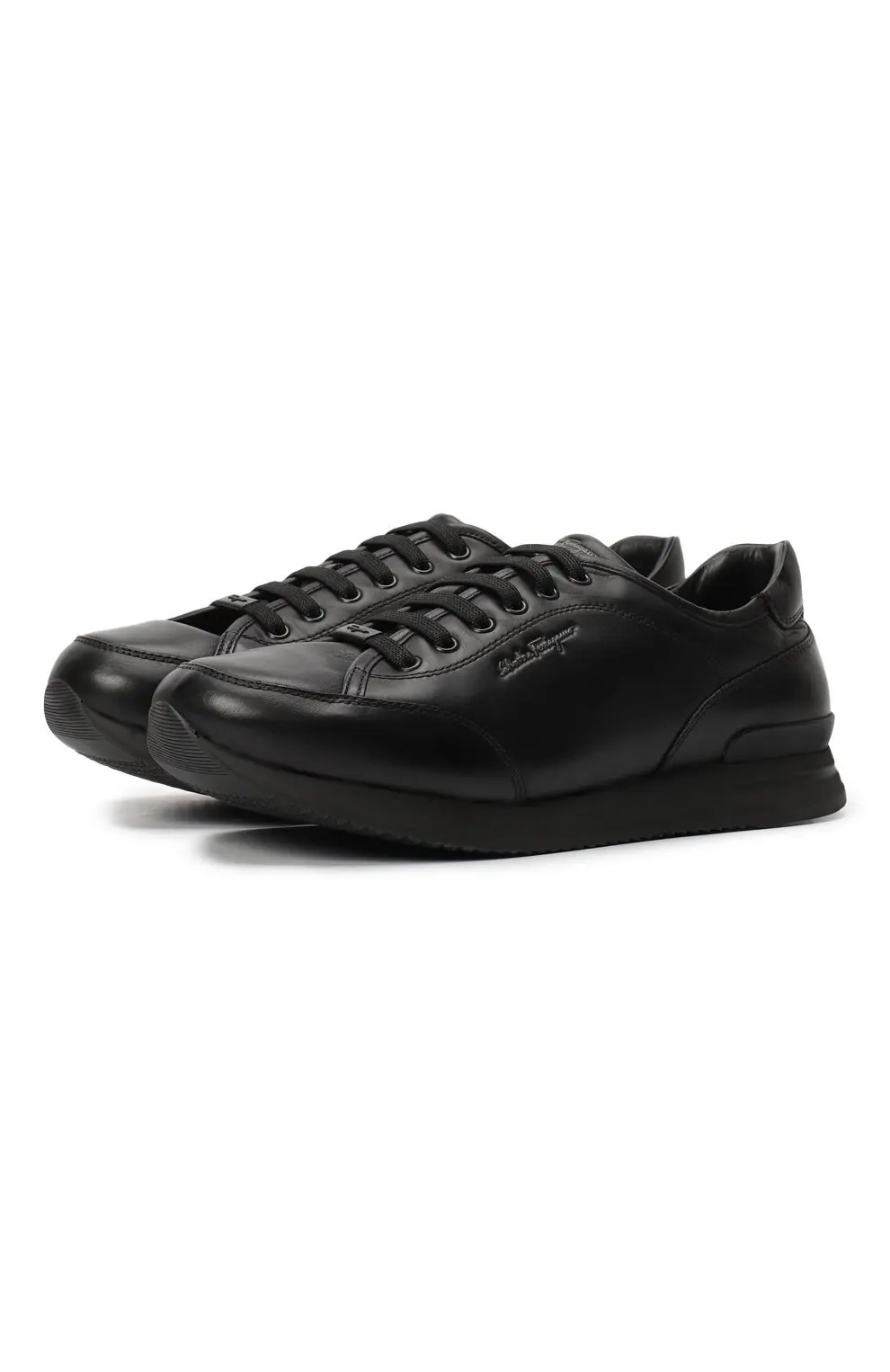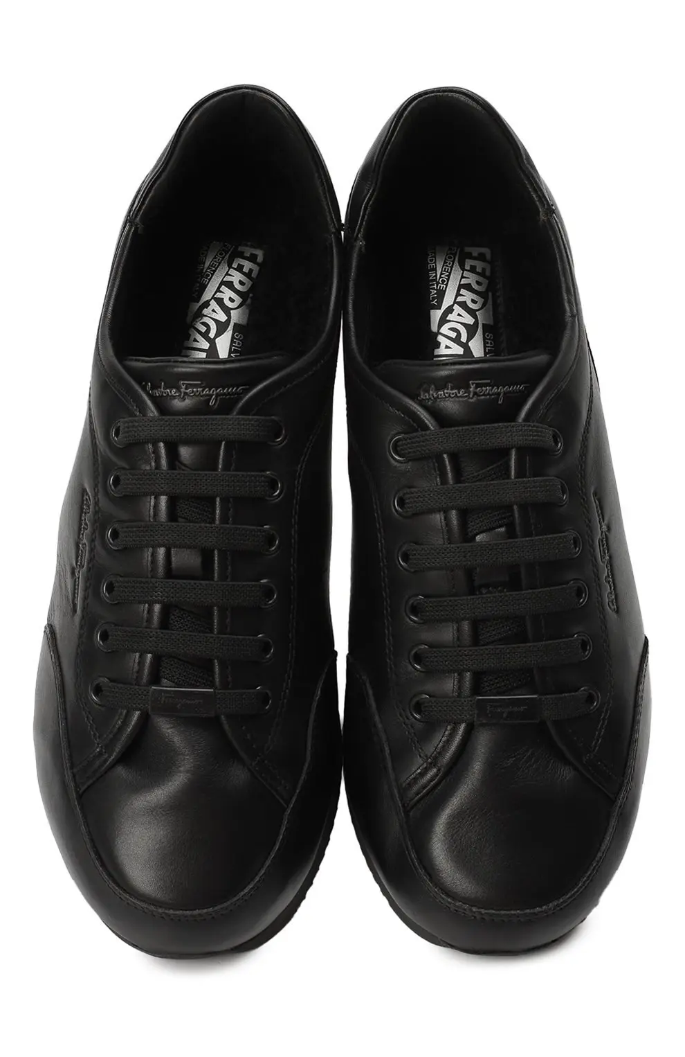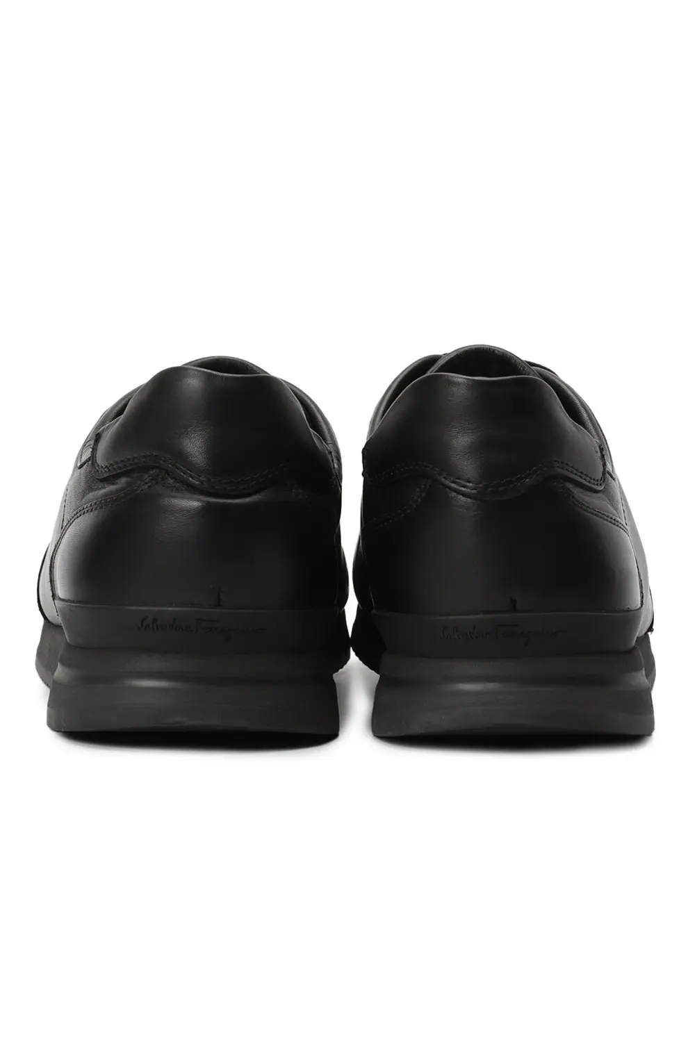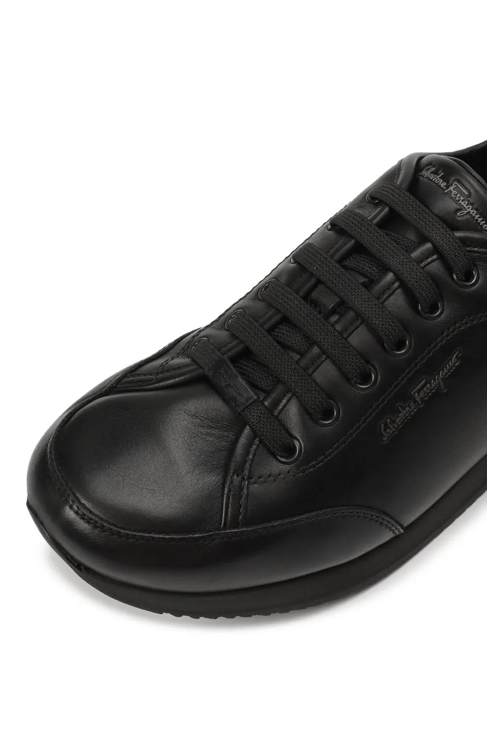 Кроссовки Salvatore Ferragamo выполнены из чёрной гладкой кожи, что придаёт модели элегантный и универсальный вид. Лаконичный дизайн дополнен фирменной надписью бренда сбоку. Удобная шнуровка и мягкая подошва обеспечивают комфорт при носке, а минималистичный стиль делает их подходящими как для повседневных образов, так и для более строгих сочетаний.